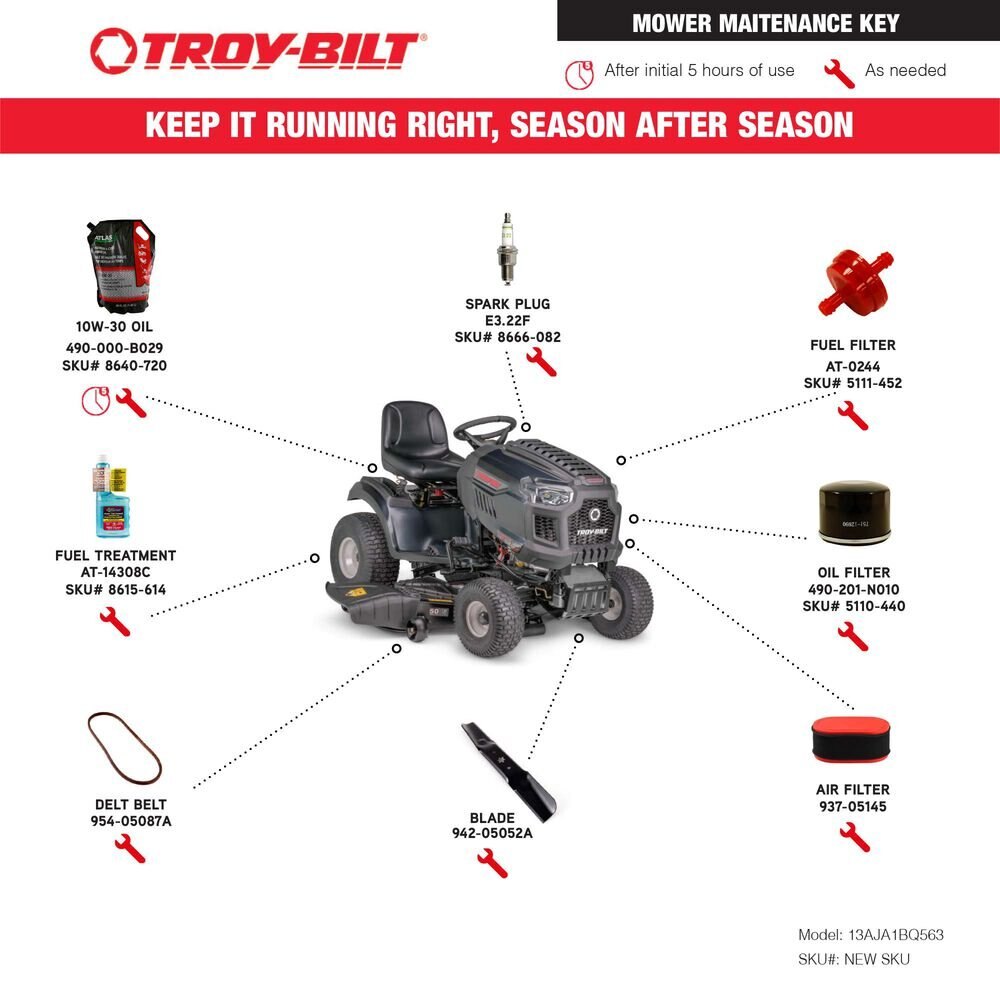 Extra comes standard with the Troy-Bilt® XP Series™, and the Super Bronco™ 50 XP riding lawn mower has the extra performance you'll need. A strong 725cc Troy-Bilt engine delivers quieter, more balanced performance and the power you need to tackle large properties with ease. Easily engage the large 50" fabricated steel cutting deck to deliver a clean, consistent cut with the electric PTO switch. The systems monitor with LED readout let's you know when the lawn tractor is ready for service. All backed by a strong, 3-year limited warranty for extende dpeace of mind. When your yard asks a little more of you, the Troy-Bilt XP Series offers the extra performance you need.