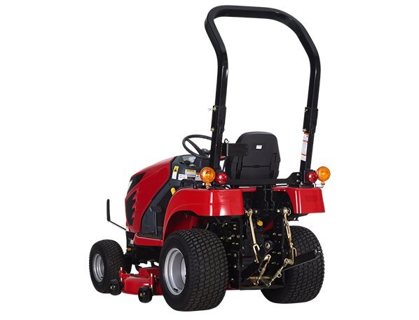 The Roll Over Protective Structure (ROPS) of the tractor is designed to be folded, allowing for easy storage in low-ceiling garages or sheds. |