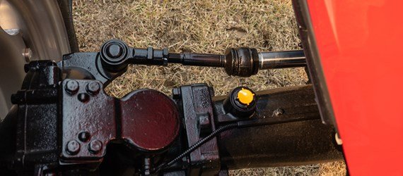 The heavy duty 4WD front axle allows the tractor to lift heavy loads and tow large implements while absorbing shock and maintaining tractor stability. Powerful hydraulics support the power steering system, which benefits from a dual action mechanism using a hydraulic cylinder and tandem type hydraulic pump. |