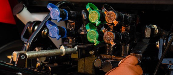 The 6-port valve on the rear of the tractor allows implements of different functions to be controlled easily. This is particularly beneficial for applications like row crop farming and material handling, as trailers are fit with an optional hydraulic brake. |
