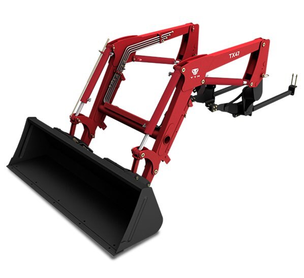 TX47 Front-End Loader The TX47 front-end loader takes advantage of the power and durability of TYM compact tractors. Ideal for tasks that require more strength, the TX47 front-end loader can help you get your tasks done more efficiently.loader takes advantage of the power and durability of compatible TYM compact tractors. Ideal for tasks that require more strength, these front-end loaders can help you get your tasks done more efficiently.