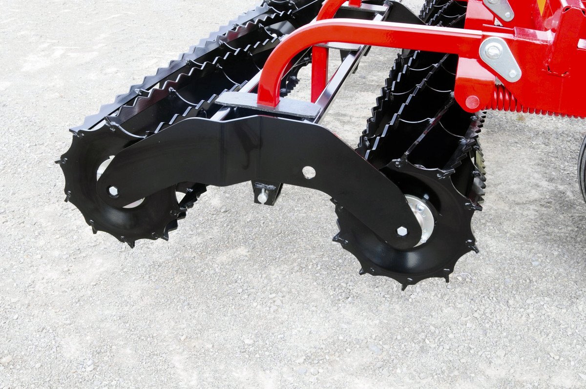 Heavy duty design for high-speed soil finishing! The model 1645 Rolling Harrow soil conditioner adds to the three decade long tradition of this timeless tool. The model 1645 double basket Rolling Harrow® features aggressive 16" diameter front rolling baskets with scalloped and pitched blades for breaking up larger clods. The passive, 16" diameter rear rolling baskets applies the finishing touches to the operation with additional soil conditioning and firming. The 1645 is specifically designed for high-speed soil finishing behind field cultivators, discs and vertical tillage tools. |