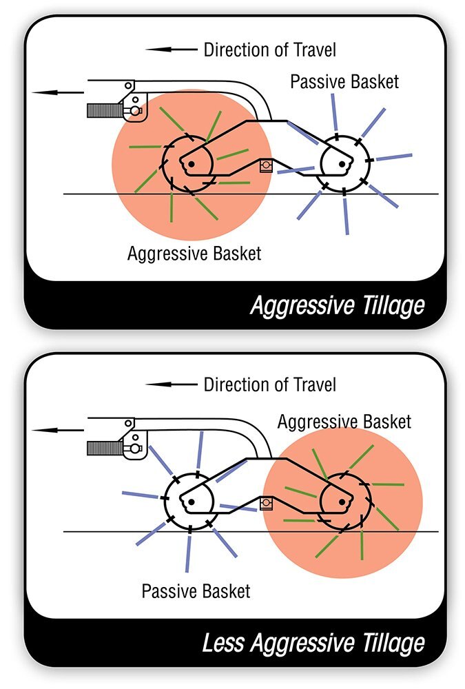 The model 1245 double basket Rolling Harrow® adds to the three decades long tradition of aggressive, scalloped and pitched front rollers coupled with passive rear rollers for the best seedbed possible. The model 1245 Rolling Harrow® features an exclusive basket design with notched end and center discs along with 20% taller blades for optimum soil penetration and longer life. |