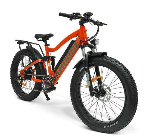 A full suspension, 48V 500W mountain crusher, the Vamoose ODIN 4.2 mountain bike brings enjoyment to trails full of bumps and chatter - with an added rear rack!