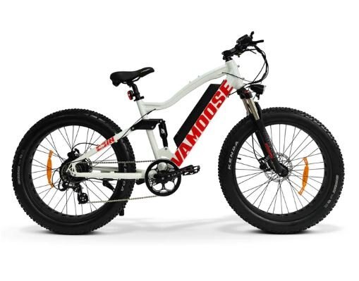 A full suspension, 48V 500W mountain crusher, the Vamoose ODIN 4.2 mountain bike brings enjoyment to trails full of bumps and chatter - with an added rear rack!