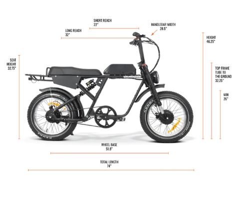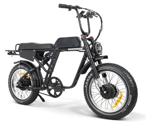 With dual 750W motors, a 52V system, and a design that recalls the styling of '70s era motorcycles, the Vamoose NOMAD will take you from long commutes to trips in the trails in style and comfort.