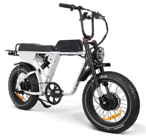 With dual 750W motors, a 52V system, and a design that recalls the styling of '70s era motorcycles, the Vamoose NOMAD will take you from long commutes to trips in the trails in style and comfort.