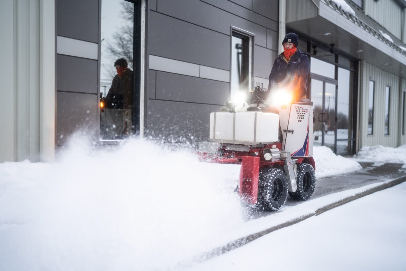 34" wide compact machine tailored for sidewalks ONE PASS DE-ICING Apply brine and drop salt in one pass for a complete application system QUICK ATTACH HITCH Tool-free attachment changes in under a minute 8 MPH TOP SPEED Achieve the best results with top speed efficiency |