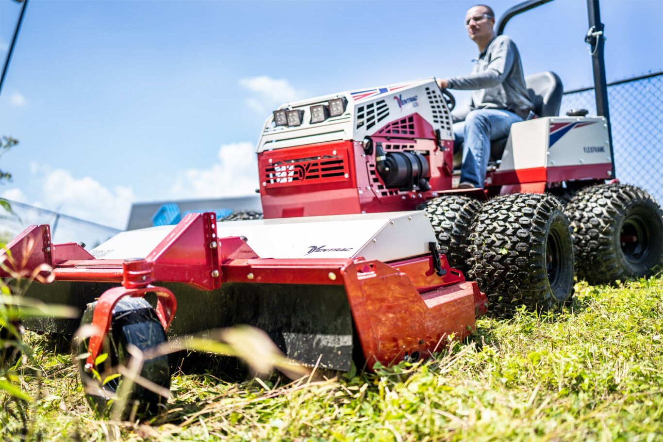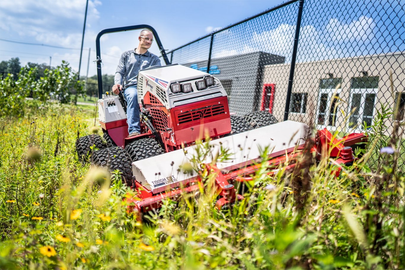 Ventrac Tough Cut The Tough Cut is an industry-leading front-mounted deck, allowing you to cut the grass before the tires trample it down. Cut through tall brush, tough weeds, or small saplings and mow places with rough terrain you never thought were possible. |
