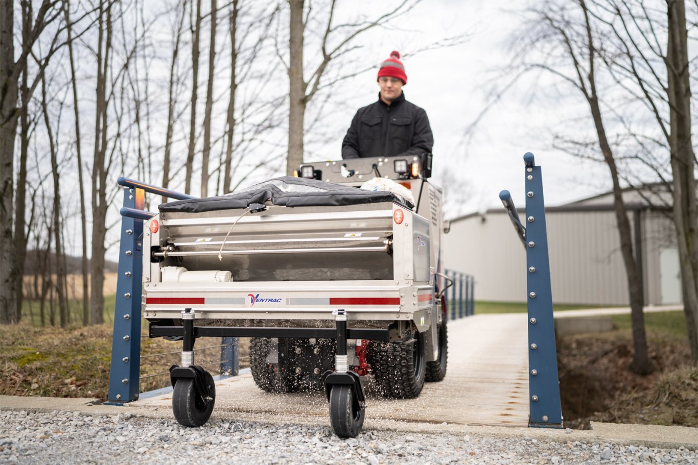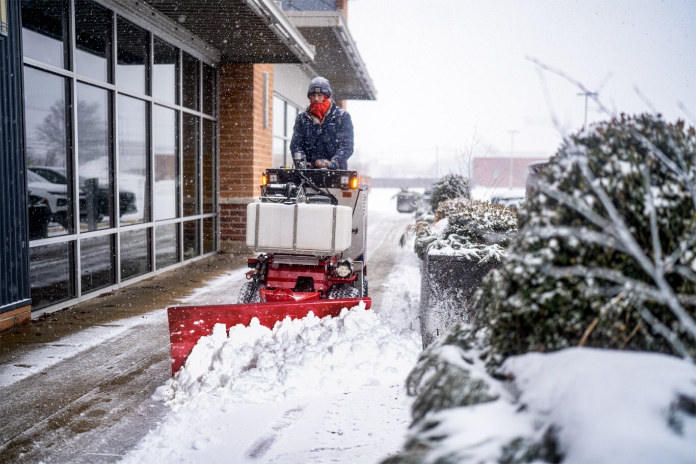 34" wide compact machine tailored for sidewalks ONE PASS DE-ICING Apply brine and drop salt in one pass for a complete application system QUICK ATTACH HITCH Tool-free attachment changes in under a minute 8 MPH TOP SPEED Achieve the best results with top speed efficiency |