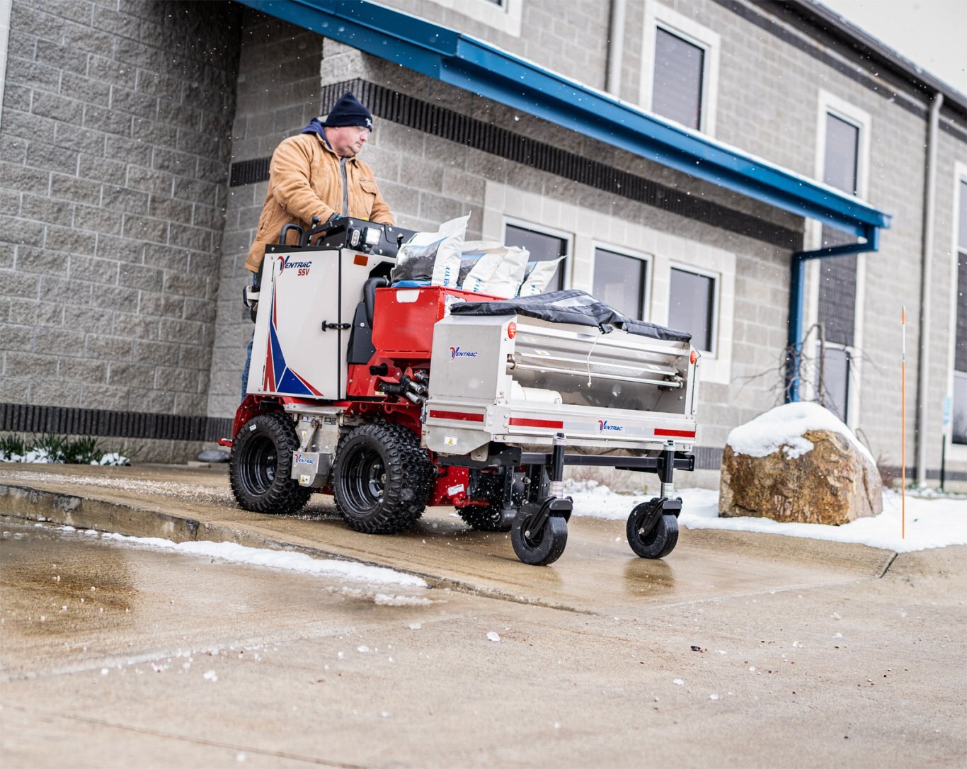 The next generation of Sidewalk Snow Vehicle is here The Ventrac SSV is your one-pass snow removal and de-icing machine, engineered to be a system that can handle any winter storm. The Sidewalk Snow Vehicle is a refined and durable option for those zero-tolerance accounts, making it easy to manage snow and ice on sidewalks when you need it most. The SSV allows for further reduction of hand labor and walk-behind equipment than ever before. With stand-on 4x4 skid steer operation, the SSV has a 36” working width that allows you to travel miles of sidewalk in a fraction of the time, furthering the reduction of hand labor and walk-behind equipment. With a full line-up of commercial quality snow removal attachments and de-icing options, the SSV is sure to be a game-changer for you this winter season. |
