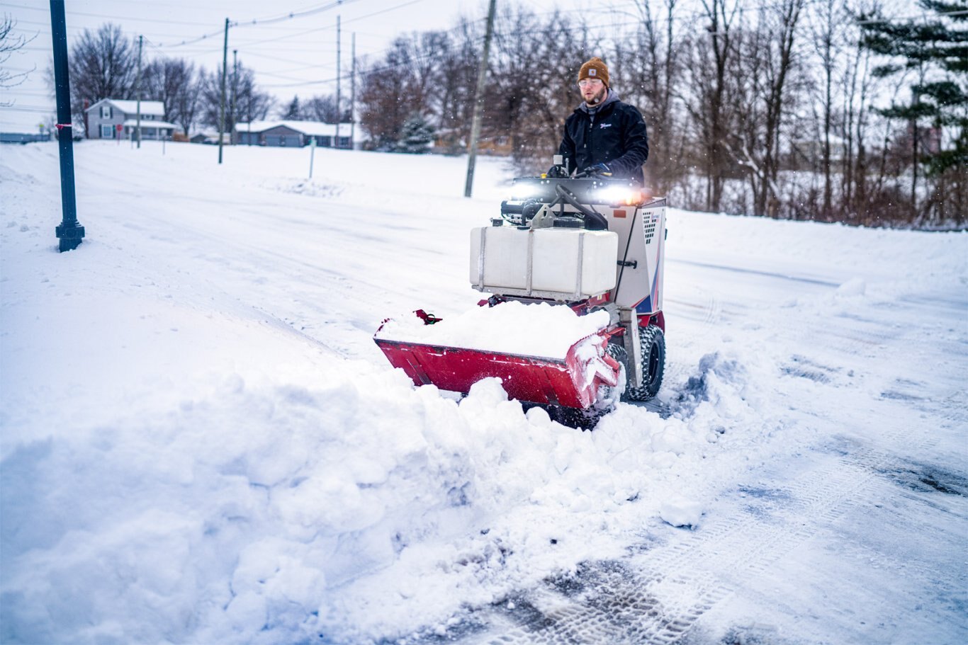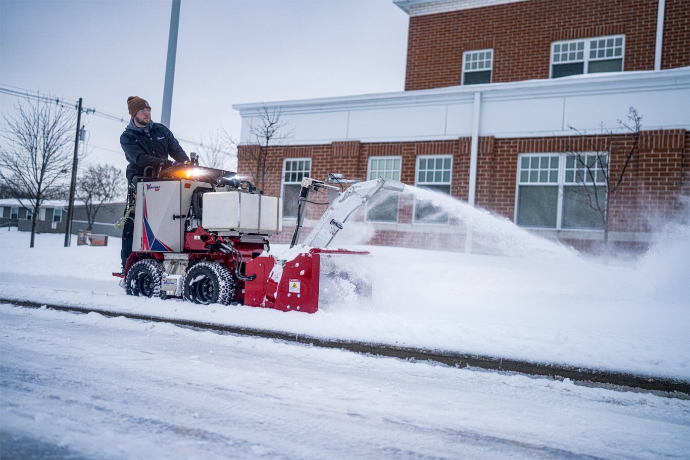 Newly added dual-zone heated hand grips, intuitive controls, and suspended platform 4X4 SKID STEER OPERATION The perfect combination of maneuverability and power ALL THE OPTIONS Every attachment and accessory to manage a full range of sidewalk snow effectively |