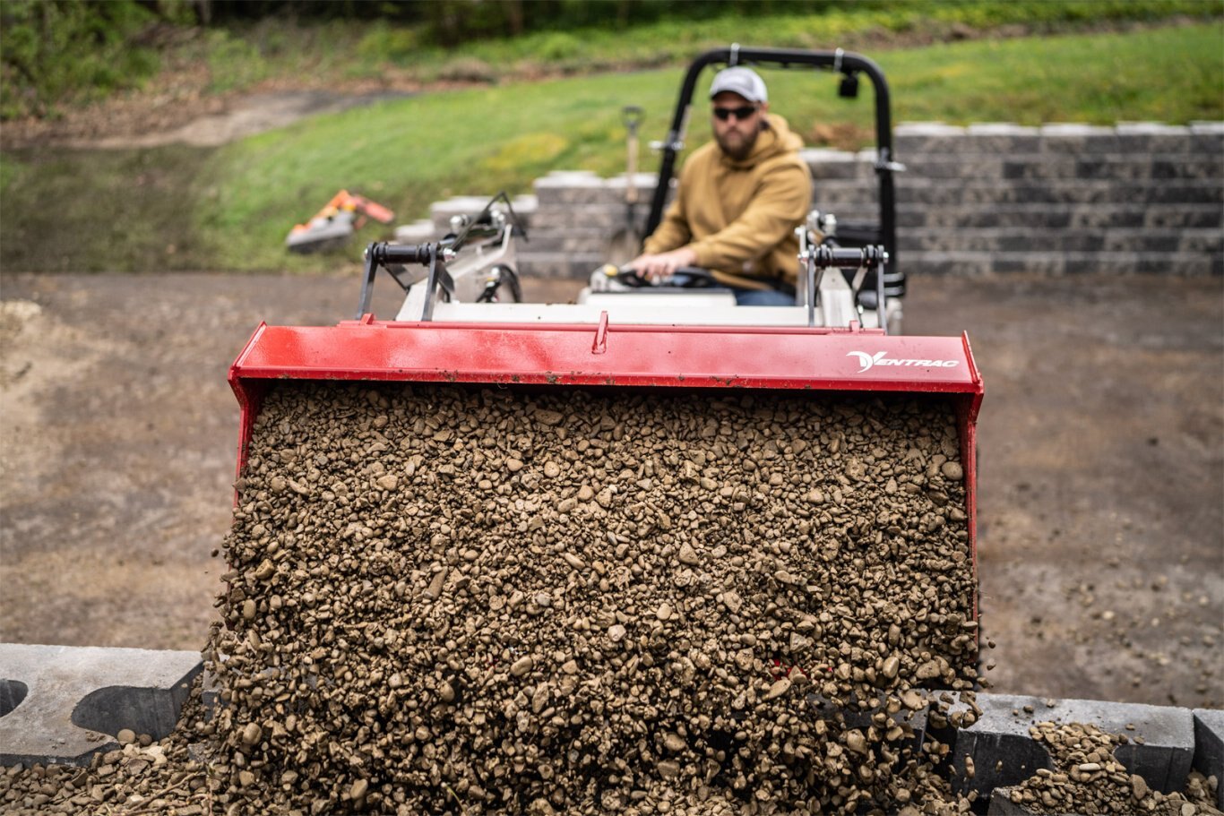 | The Ventrac KM500 Loader has arrived, adding enhanced versatility for the landscape, hardscape, site work, and tree care industries.With easy operation and effortless installation, the KM500 Loader on the Ventrac 4520 is a dream combination that maximizes the capability of the tractor while serving as a loader and material mover. When combined with a dual-wheeled tractor, it becomes the most turf-friendly loader in the industry, allowing you to move quickly across turf without tracking the ground. |