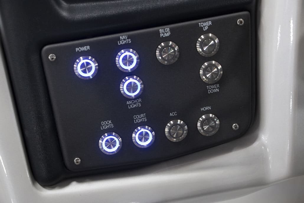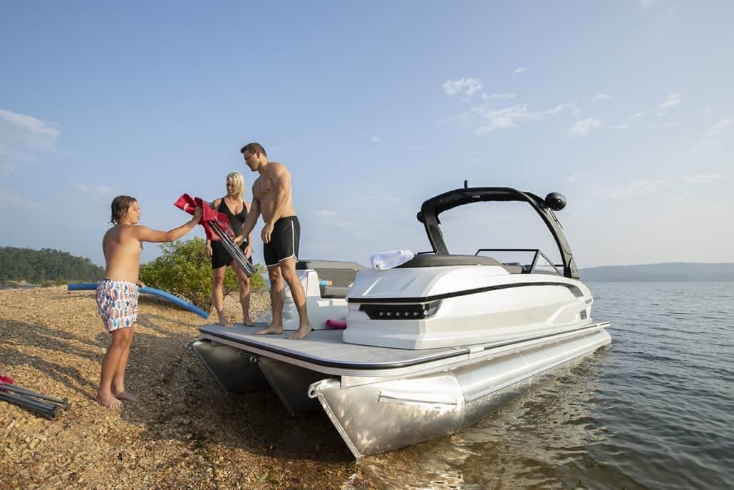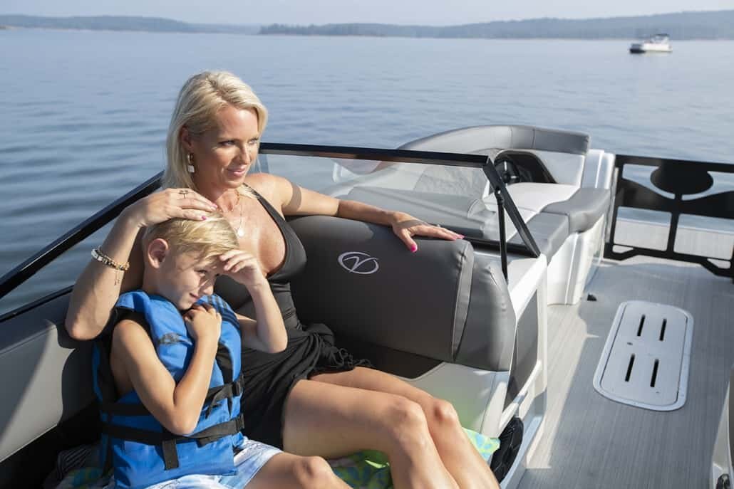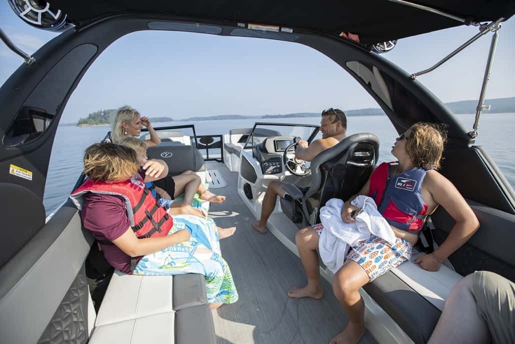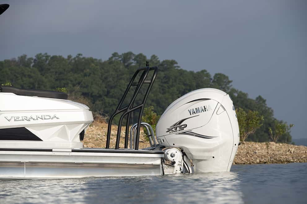 V One. The instant a pilot reaches that critical “V” speed is the moment your heart beats faster and excitement and exhilaration begin to take flight. Imagine yourself at the helm of Veranda Luxury Pontoons 25’ tri-toon flagship. The striking fiberglass exterior will turn heads on the lake, while the geometrically patterned interior upholstery will transform your passengers’ stress and worry into utter bliss. Experience the engineering accuracy of construction and the impeccable pairing of state-of-the-art audio, lighting, and navigational features positioned on top of our Patented All-Aluminum All-Welded Interlocking Floor System. The control tower is calling. Are you ready to take flight?