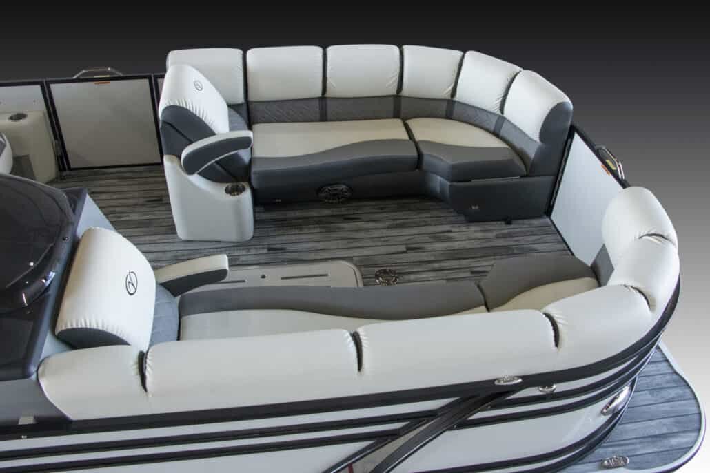 Whether an action-filled day of water sports or taking an exhilarating cruise wrapped in ultimate sport luxury style, Veranda Luxury Pontoons VP Tower Series RCT (Rear Chaise Tower) provides comfort, strength, and safety built upon the Veranda Luxury Pontoons Patented All-Aluminum All-Welded Interlocking Deck System. The finest engineered platform in the luxury pontoon boating industry is within your reach. Be transported by the VP Tower RCT – where water sports and pillow-top comfort meet.