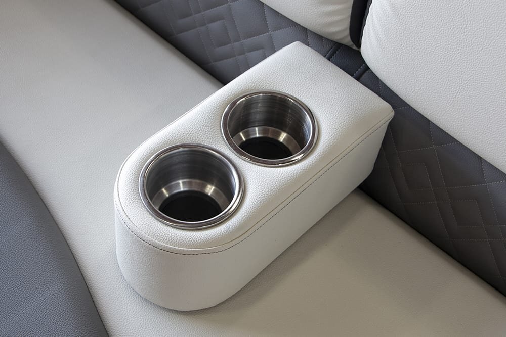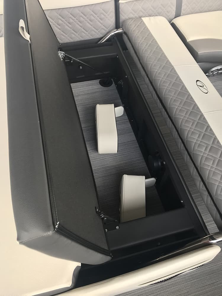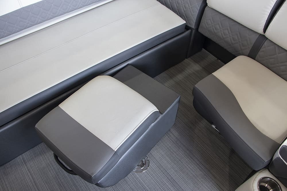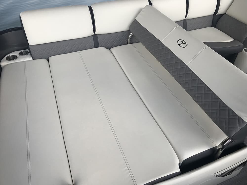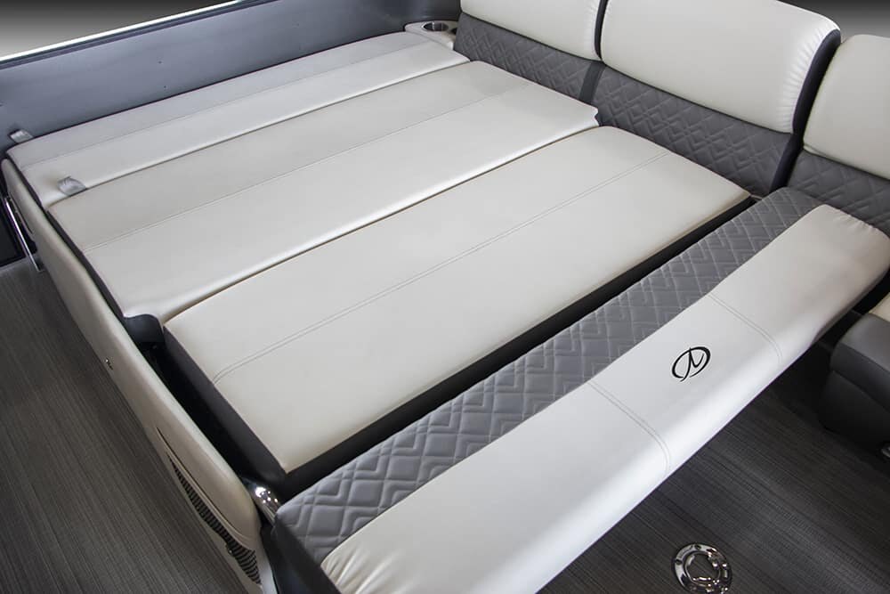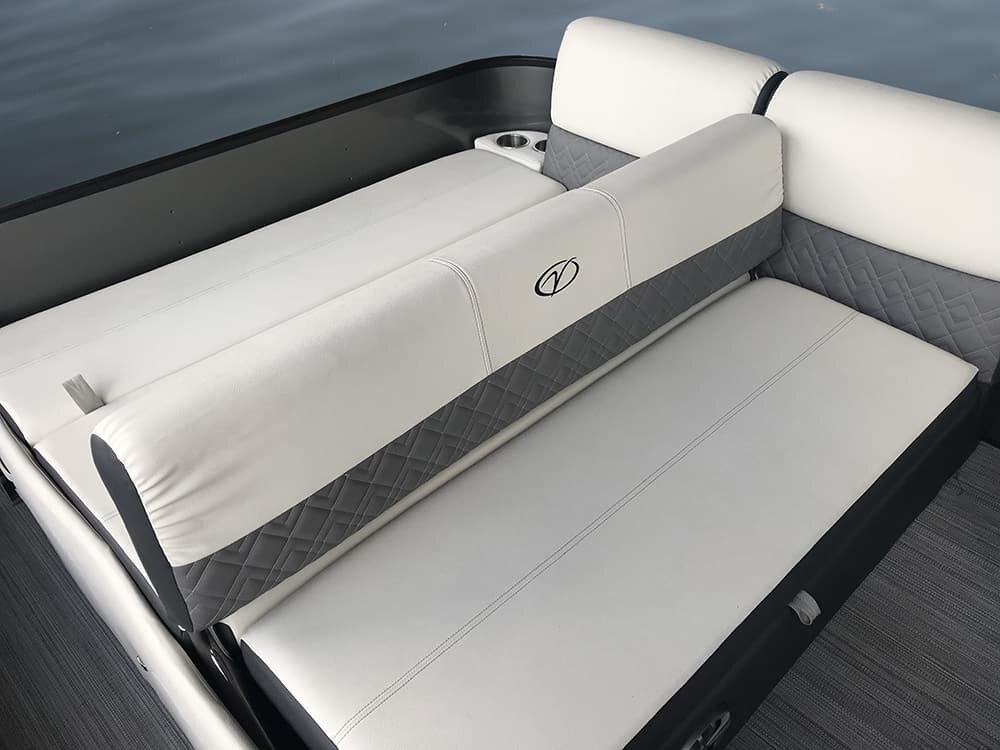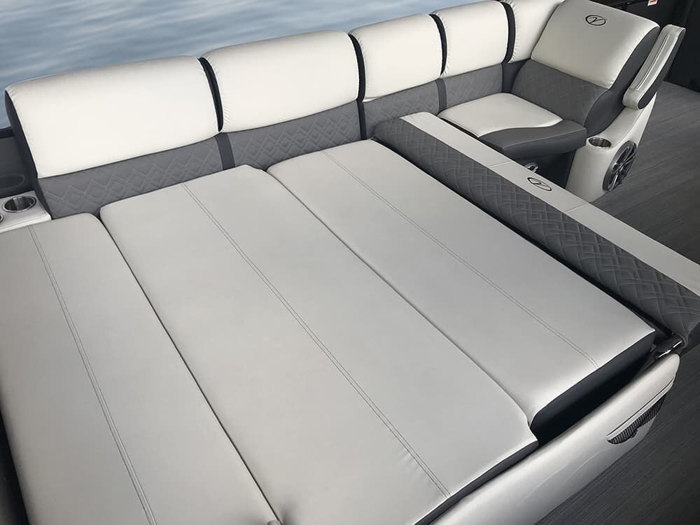 The VP Versa Lounge with 3-position pillow-top aft lounge seating, full-length rear cabin port seat back, and two forward chaise lounges, provides soothing comfort to everyone onboard. The Versa Lounge Bench (VLB) layout also includes a removable ottoman and mid-cabin bench. The Versa Lounge, coupled with the Veranda Difference, has never felt so good! Click here to learn more about the Veranda Versa Lounge! The VP VLB floorplan…talk about luxury!