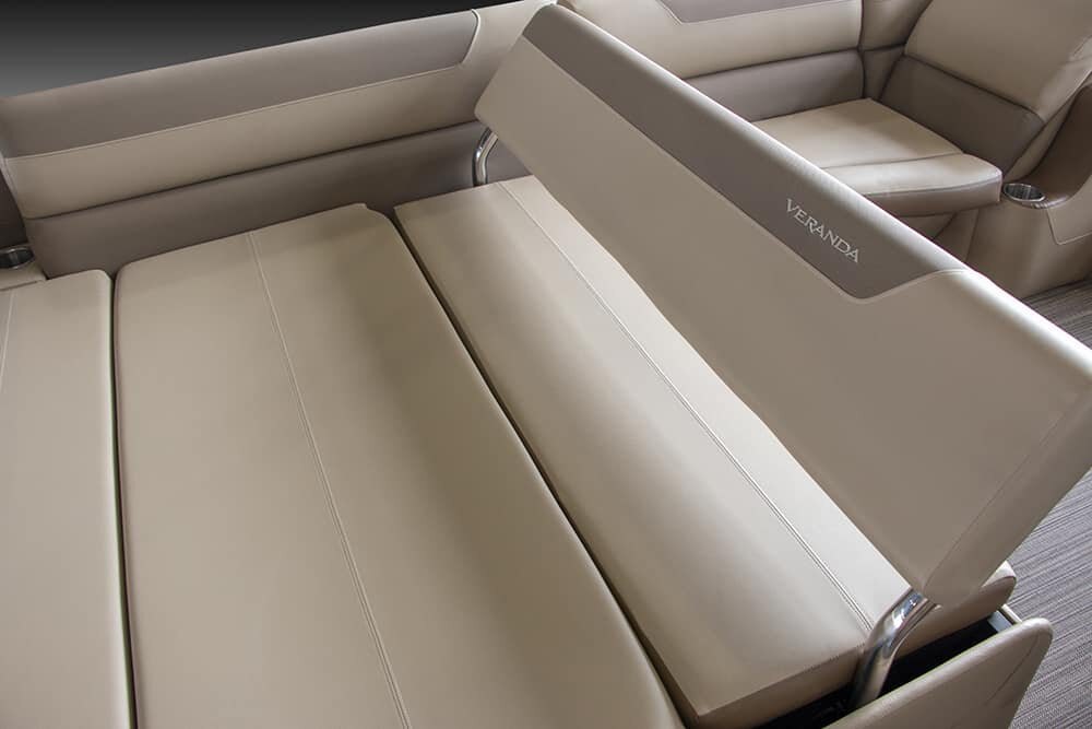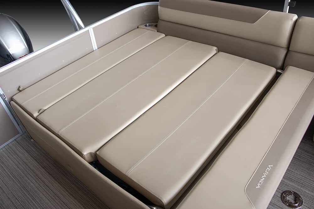 Boating enthusiasts of all ages trust Veranda’s Relax Series for its versatility and comfort. With the Versa Lounge floor plan’s 3-position aft lounge seating, you can experience a new level of bliss. The Versa Lounge Bench (VLB) layout includes a mid-cabin bench and removable ottoman. The Relax VLB floor plan coupled with the Veranda Difference is the confidence that conquers! Click here to learn more about the Veranda Versa Lounge.