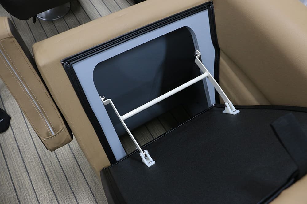 The dual console option on the all-new 2024 Vertex Series provides port-side glove box storage, additional cupholders, and sporty styling. Another consideration is the shock-assist folding tower with integrated speaker cans, more shade, and a redesigned speaker mounting system. |