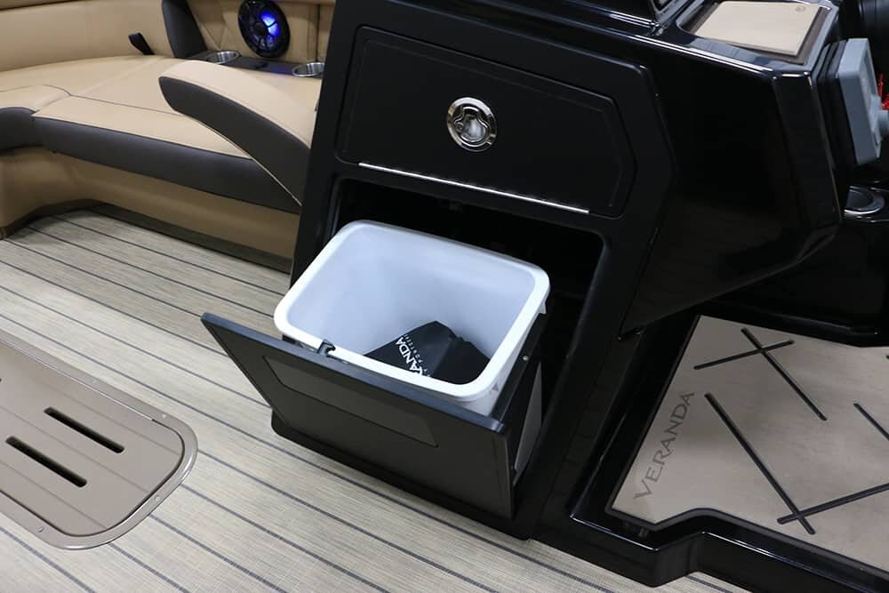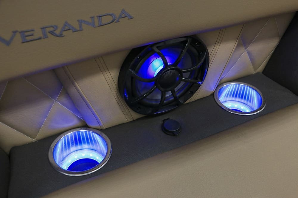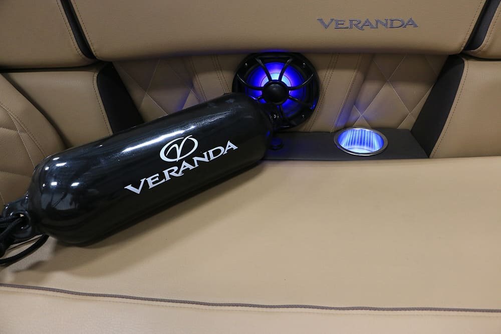 Patented All-Aluminum All-welded Interlocking Deck System Garmin Dual 9” Flush-mount Multi-function Displays Digital Switching & Push Button Redundancy 3 Spoke Designer Steering Wheel 4 Chaise Lounges w/Integrated Fold Down Armrests Bow, Mid, and Aft USB Charging Lighted Cup Holders Portable Armrests w/Cup Holders Privacy Room Rear Entry Gate Refrigerated Cup Holder at Helm Removable Table Stainless Fold Down Cleats Stainless Ladder Stainless Navigation, Anchor and Docking Lights Stainless Prop w/Engine Purchase Stainless Bumper Quick Release Hardware Four Custom Veranda Bumpers Ratchet Mooring Cover Tilt-out Trash Receptacle 27” Triple-toon Performance Package NEW Custom Fiberglass Bow NEW Custom Aft Caps and Speaker Panels Hydraulic Tilt Steering Lifting Strakes Ski Tow Pylon Integrated VLP Performance Motor Pod Industry-leading 0.100 Gauge Pontoon Tubes Center Toon In-floor Storage Choice of Woven Pewter Grey, Woven Khaki Tan, Woven Teak Distressed Grey, and Woven Teak Coconut Tan Marine Grade Flooring Dual Battery Switch Electric Bimini w/L.E.D. Bimini Light “High Rise” Hydraulic Helm Chair Wet Sounds Manufacturer-tuned Bluetooth USB Streaming Audio System w/Seven Band Digital Equalization Wet Sounds Swim Platform Audio Remote Wet Sounds Backlit Cabin Speakers Wet Sounds 10″ Subwoofer Bass w/Amplifier and RGB Lighting Wet Sounds 6×9 Rear Swim Platform Area Speakers w/TecNiq Diffused RGB Glow Lighting Designer Vertex Series Gates Vertex Designer Fluted Powder Coat Railing Totally Redesigned Vertex Seating w/Elevated Onboard Sound RGB Underwater Lights RGB Underdeck Lights RGB Interior Mood Lighting Elevated SeaDek- lined Helm Platform w/RGB Lighting Rotational Molded Wood-free Seat Bases w/Water Management |