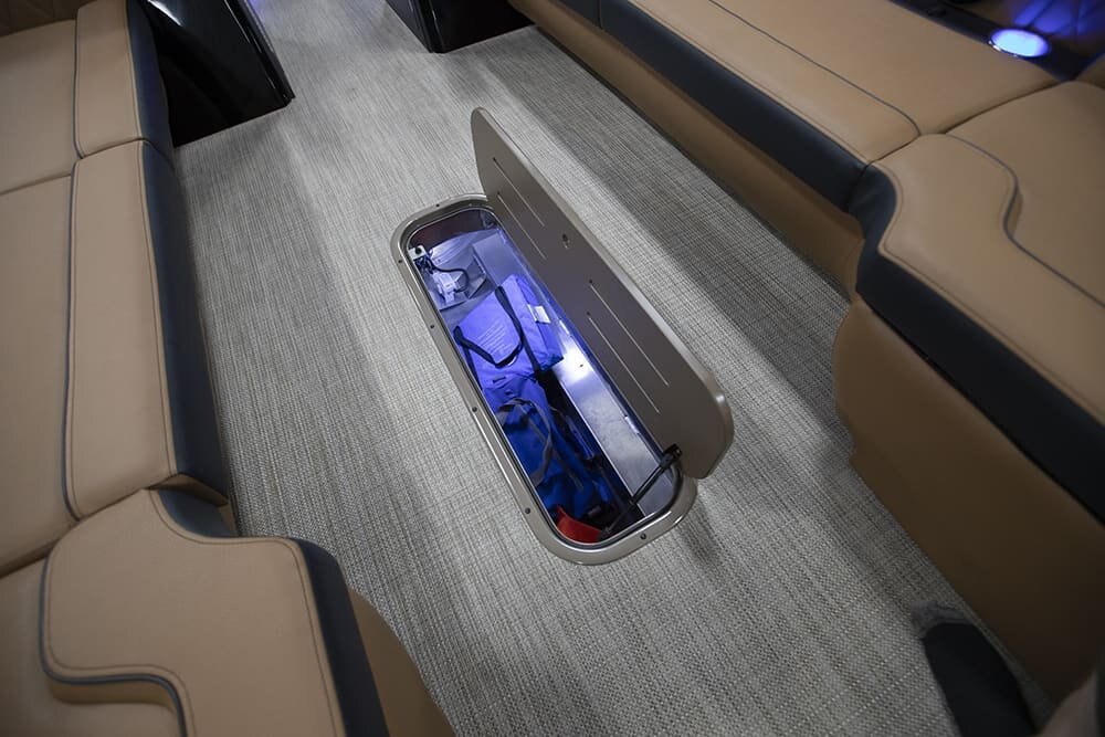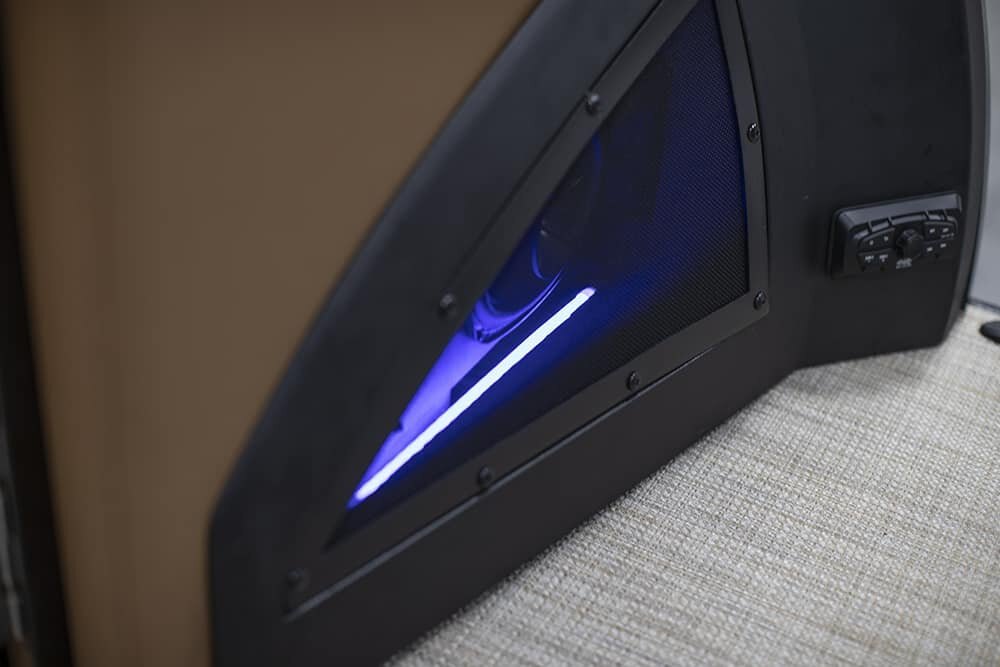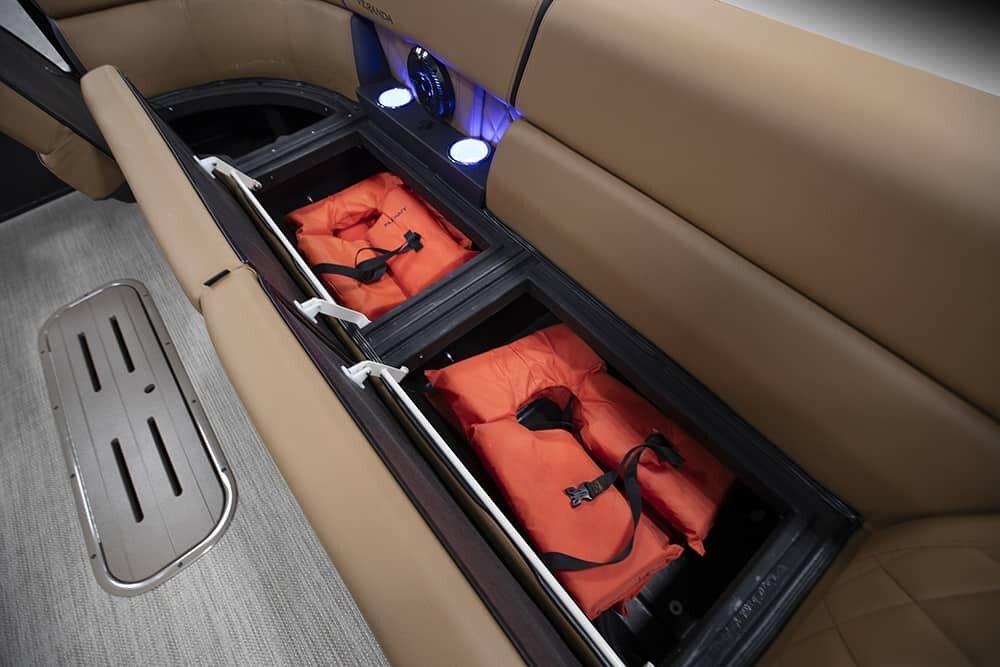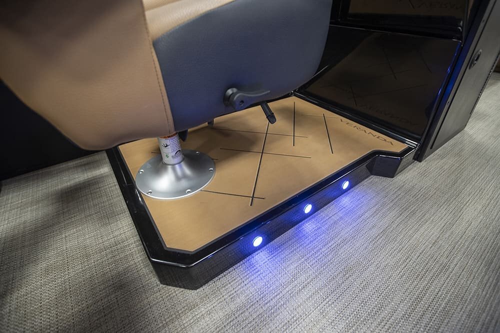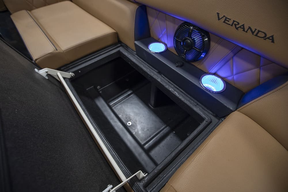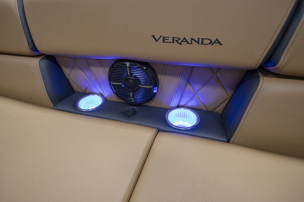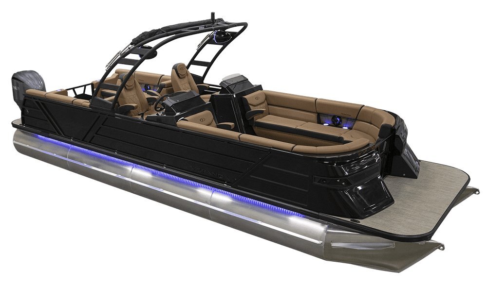 Patented All-Aluminum All-welded Interlocking Deck System Garmin Dual 9” Flush-mount Multi-function Displays Digital Switching & Push Button Redundancy 3 Spoke Designer Steering Wheel NEW Dual Console Floor Plan w/Glove Box and Cup Holder 4 Chaise Lounges w/Integrated Fold Down Armrests Bow, Mid, and Aft USB Charging Lighted Cup Holders Portable Armrests w/Cup Holders Privacy Room Rear Entry Gate Refrigerated Cup Holder at Helm Removable Table Stainless Fold Down Cleats Stainless Ladder Stainless Navigation, Anchor and Docking Lights Stainless Prop w/Engine Purchase Stainless Bumper Quick Release Hardware Four Custom Veranda Bumpers Ratchet Mooring Cover Tilt-out Trash Receptacle 27” Triple-toon Performance Package NEW Custom Fiberglass Bow NEW Custom Aft Caps and Speaker Panels Hydraulic Tilt Steering Lifting Strakes Ski Tow Pylon Integrated VLP Performance Motor Pod Industry-leading 0.100 Gauge Pontoon Tubes Center Toon In-floor Storage Choice of Woven Pewter Grey, Woven Khaki Tan, Woven Teak Distressed Grey, and Woven Teak Coconut Tan Marine Grade Flooring Dual Battery Switch Electric Bimini w/L.E.D. Bimini Light “High Rise” Hydraulic Helm Chair Wet Sounds Manufacturer-tuned Bluetooth USB Streaming Audio System w/Seven Band Digital Equalization Wet Sounds Swim Platform Audio Remote Wet Sounds Backlit Cabin Speakers Wet Sounds 10″ Subwoofer Bass w/Amplifier and RGB Lighting Wet Sounds 6×9 Rear Swim Platform Area Speakers w/TecNiq Diffused RGB Glow Lighting Designer Vertex Series Gates Vertex Designer Fluted Powder Coat Railing Totally Redesigned Vertex Seating w/Elevated Onboard Sound RGB Underwater Lights RGB Underdeck Lights RGB Interior Mood Lighting Elevated SeaDek- lined Helm Platform w/RGB Lighting Rotational Molded Wood-free Seat Bases w/Water Management |