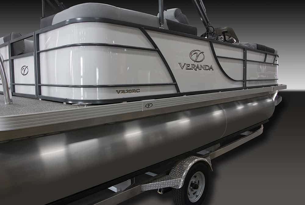 Stainless Package Stainless Ladder Stainless Folding Cleats Stainless Quick Release Bumper Hardware Stainless Gate Handles Stainless Prop with Engine Purchase Table Package 27” Triple-Toon Performance Package** **25” Pontoons on VR20RC and Bi-Toon Models Center Toon In-Floor Storage 9’ Bimini Top Illuminate Package RGB Underdeck Lights RGB Underwater Lights L.E.D. Interior Mood Lighting Audio Marine Backlit Coaxial Speakers Four Custom “Veranda” Bumpers |