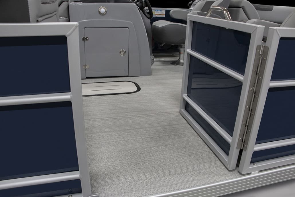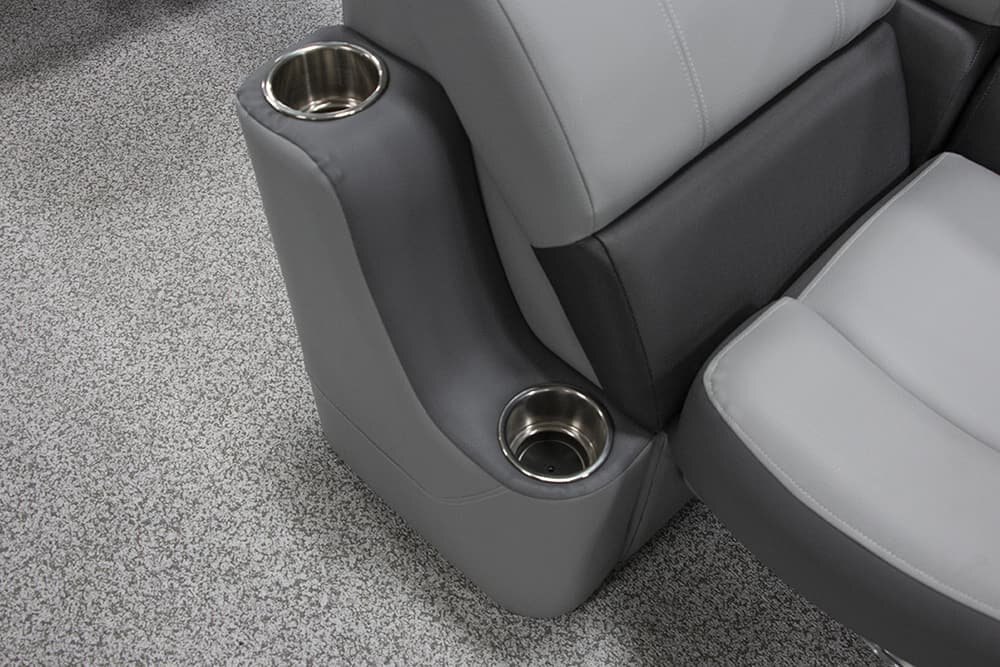 Fiberglass Console with Vinyl Top Horn With Stainless Grill Hour Meter L.E.D. Navigation & Anchor Lights L.E.D. Courtesy Light on Console Pebble Beach Vinyl Tan Flooring or Pebble Beach Vinyl Grey Flooring Privacy Room Reclining Helm Seat Speed, Tach, Fuel and Trim Gauges Stainless Cup Holders Stainless Docking Lights Stainless 6” Deck Cleats Stainless Quick Release Bimini Hardware Under Console Storage NEW 2022 Relax Series Fence Panel Design NEW Upgraded Dash Design Base & Deluxe Models NEW Center Dash GPS 25” Triple-Toon Performance Package Hydraulic Tilt Steering Lifting Strakes Integrated Performance Motor Pod Blended Latte or Carbon and Dove Grey Upholstery Bluetooth Audio Dual High-Back Captain’s Chairs 4 Chaise Lounges with Onboard Cup Holders (22’&25’) Port Captain’s Chair with Cup Holder Tower Industry-Leading 0.100 Gauge Pontoon Tubes 9’ Bimini Top Powder Coat Rails with Choice of Color Rear Entry Gate with Boarding Ladder Rotational Molded Wood-Free Seat Bases with Water Management and Storage Ski Tow Bar Ratchet Mooring Cover |