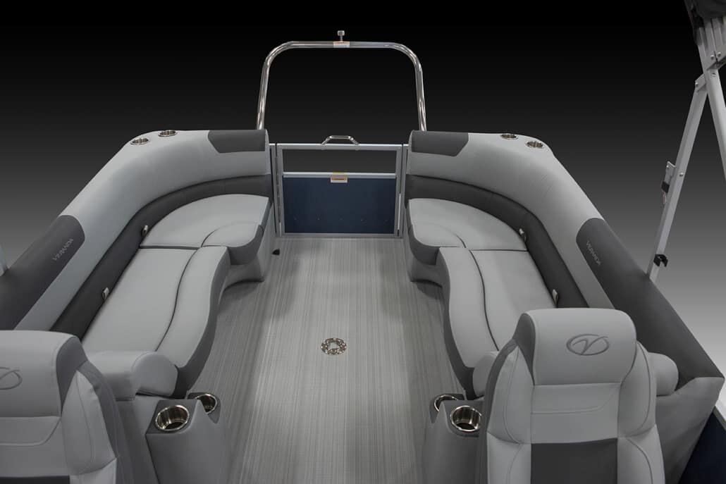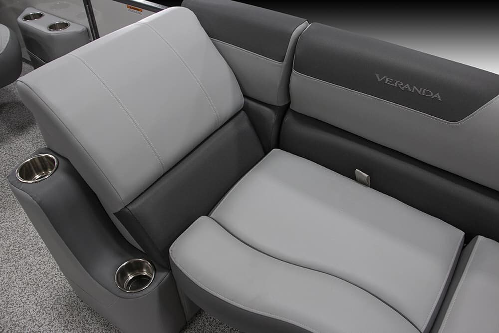 The Veranda Luxury Pontoons Relax Series RC (Rear Chaise) features wrap-around luxury and comfort. Four individual chaise lounges combined with traditional bench seating maximize comfort and capacity, accommodating your entire party in style. Industry-leading value, time-tested style, and maximum Veranda seating – all built upon the Veranda Difference. Relax in confidence, relax in comfort, and relax in the knowledge that you have made an intelligent, informed choice. |