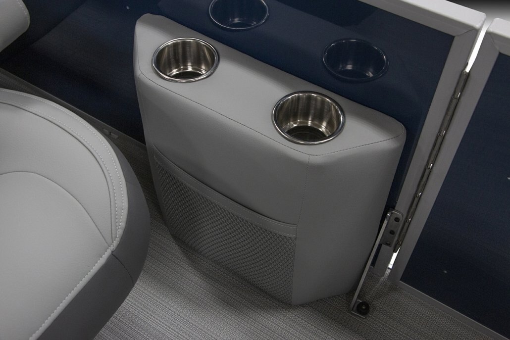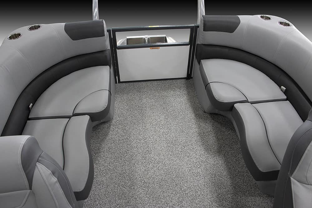 Fiberglass Console with Vinyl Top Horn With Stainless Grill Hour Meter L.E.D. Navigation & Anchor Lights L.E.D. Courtesy Light on Console Pebble Beach Vinyl Tan Flooring or Pebble Beach Vinyl Grey Flooring Privacy Room Reclining Helm Seat Speed, Tach, Fuel and Trim Gauges Stainless Cup Holders Stainless Docking Lights Stainless 6” Deck Cleats Stainless Quick Release Bimini Hardware Under Console Storage NEW 2022 Relax Series Fence Panel Design NEW Upgraded Dash Design Base & Deluxe Models NEW Center Dash GPS 25” Triple-Toon Performance Package Hydraulic Tilt Steering Lifting Strakes Integrated Performance Motor Pod Blended Latte or Carbon and Dove Grey Upholstery Bluetooth Audio Dual High-Back Captain’s Chairs 4 Chaise Lounges with Onboard Cup Holders (22’&25’) Port Captain’s Chair with Cup Holder Tower Industry-Leading 0.100 Gauge Pontoon Tubes 9’ Bimini Top Powder Coat Rails with Choice of Color Rear Entry Gate with Boarding Ladder Rotational Molded Wood-Free Seat Bases with Water Management and Storage Ski Tow Bar Ratchet Mooring Cover |