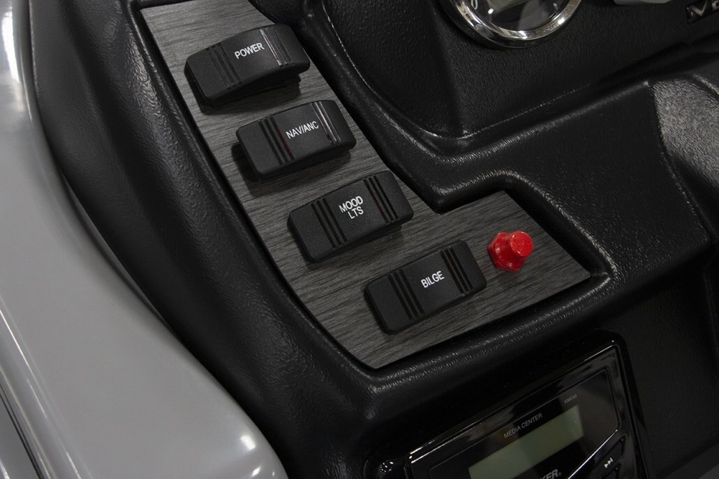NEW Relax Series Luxury Package Two-Tone Fence Panels Marine Backlit Coaxial Speakers Bazooka Subwoofer Base Tube “High Rise” Hydraulic Helm Chair Elevated SseDek-Lined Helm Platform 2 Portable Armrests with Cup Holders |