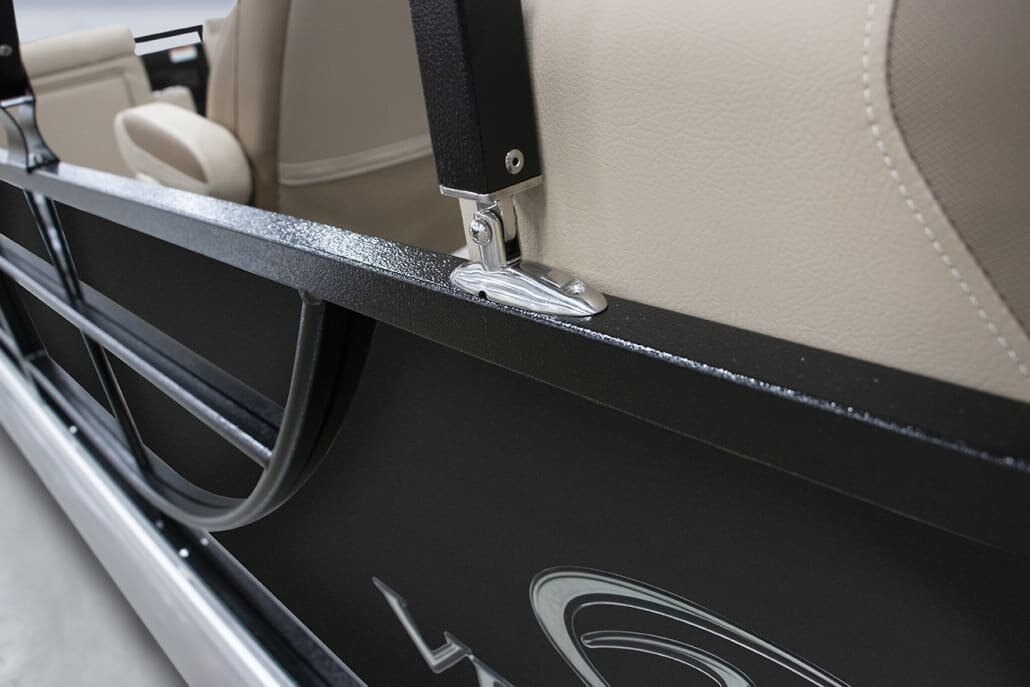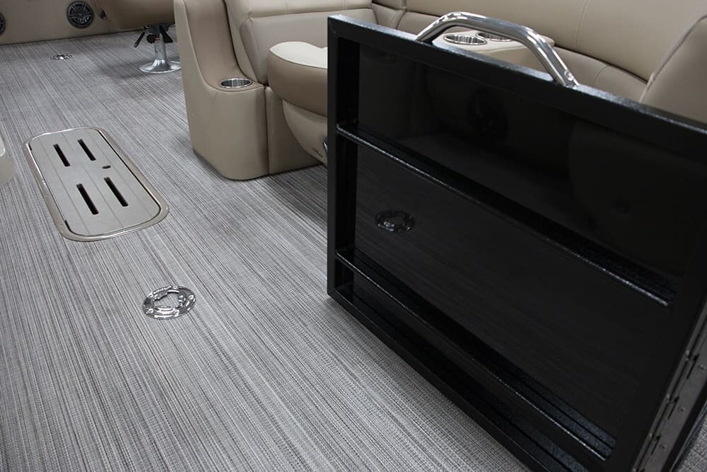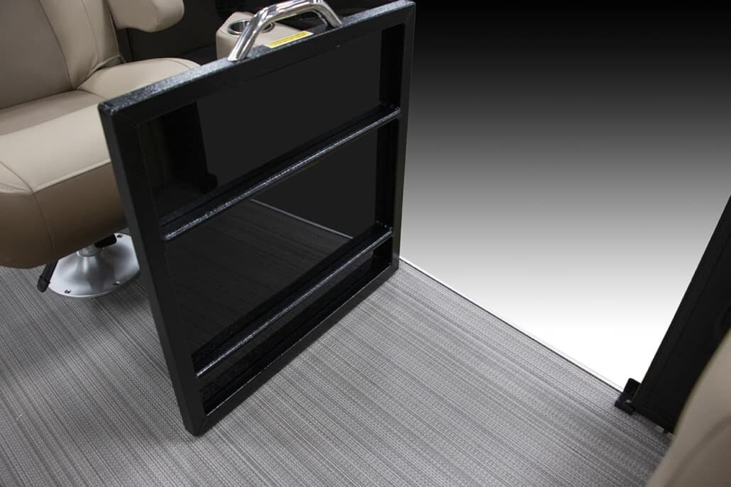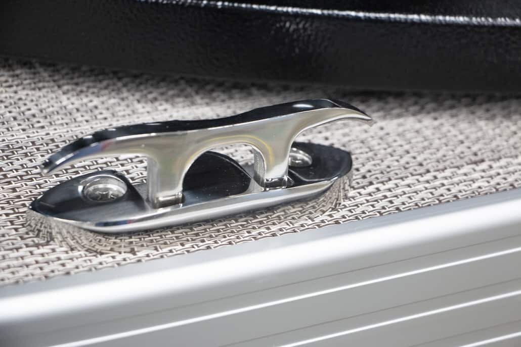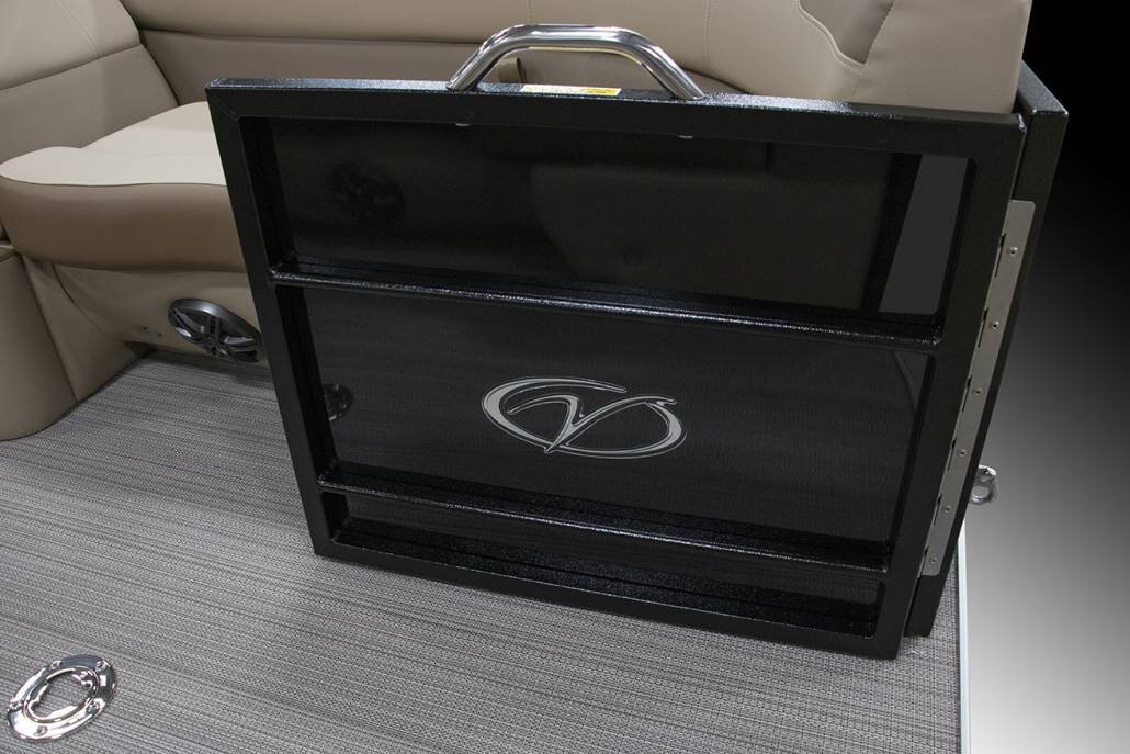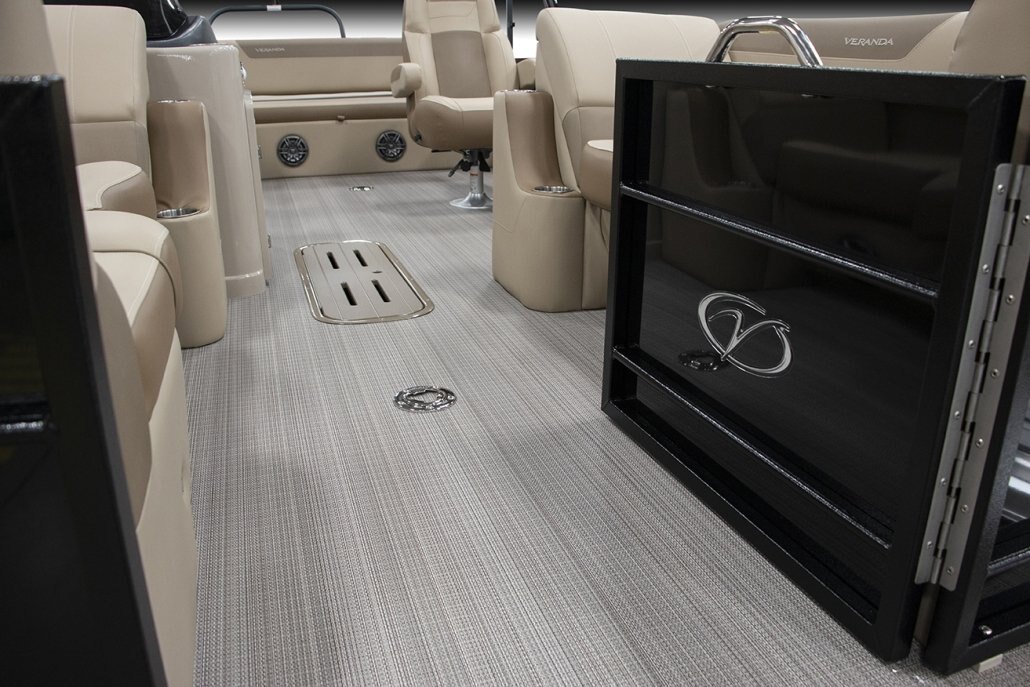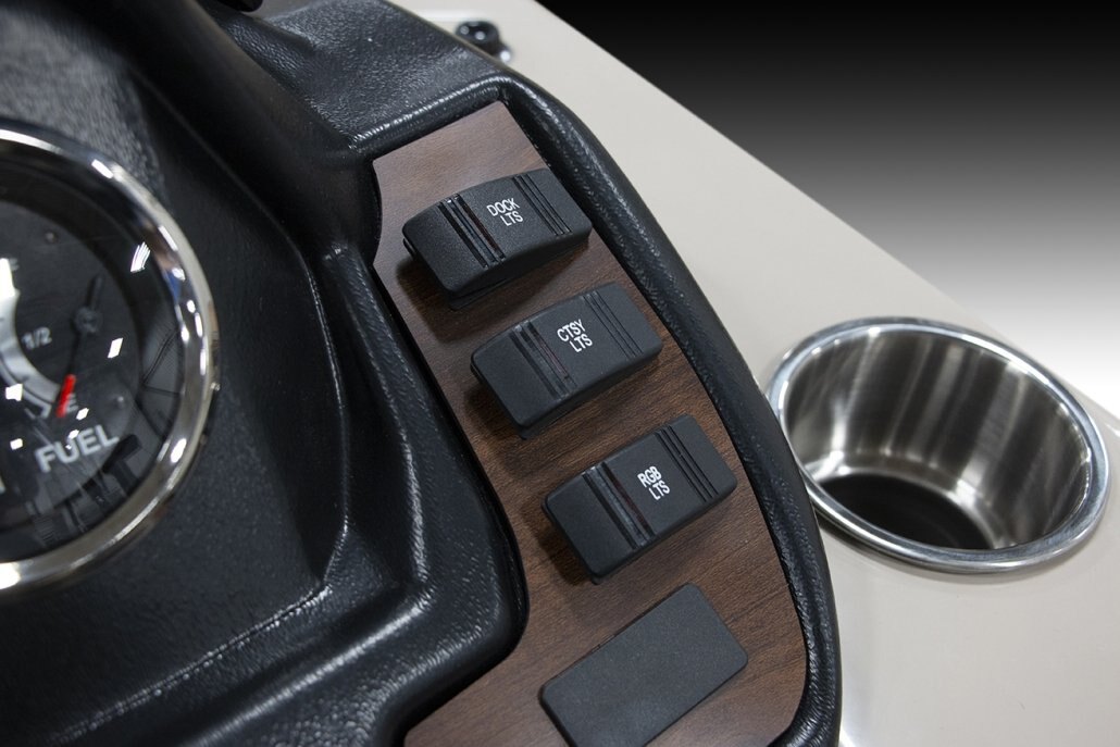 Stainless Ladder Stainless Folding Cleats Four Custom “Veranda” Bumpers Stainless Gate Handles Stainless Prop with Engine Purchase 27” Triple-Toon Performance Package Center Toon In-Floor Storage Illuminate Package RGB Underdeck Lights RGB Underwater Lights L.E.D. Interior Mood Lighting Marine Backlit Coaxial Speakers |