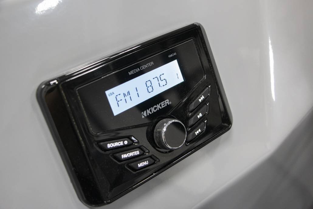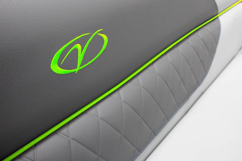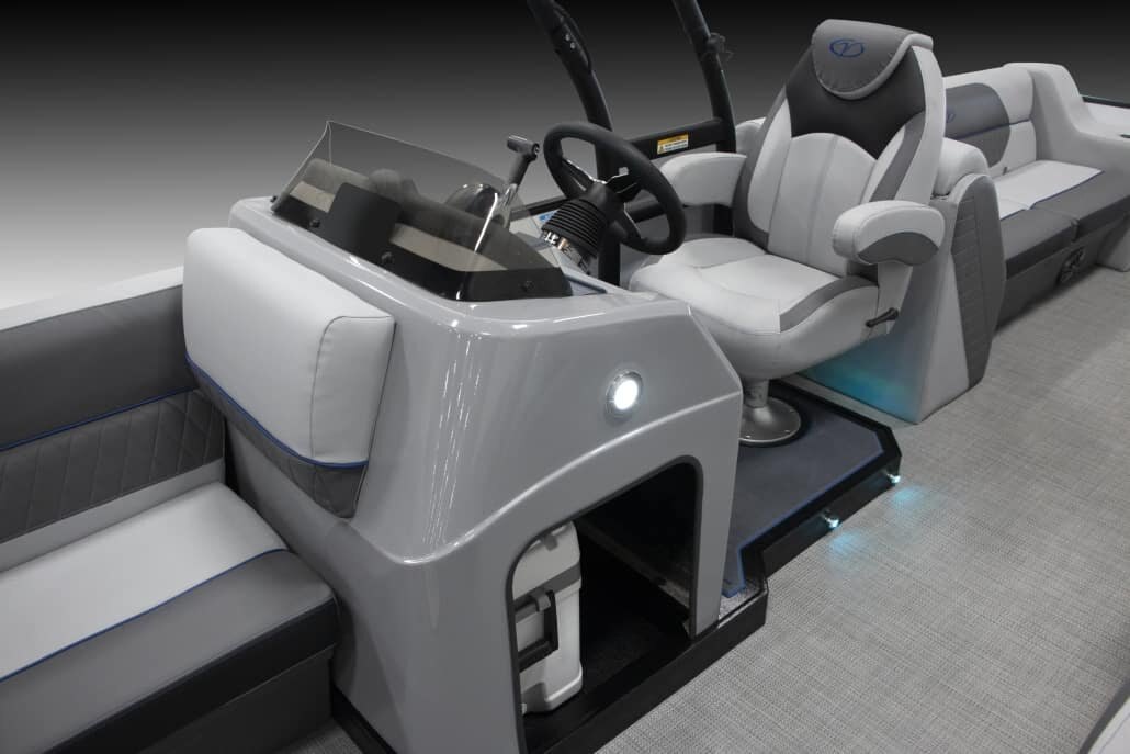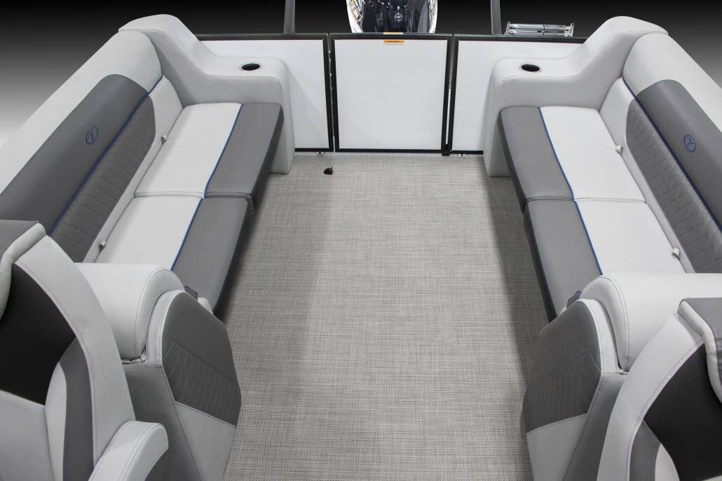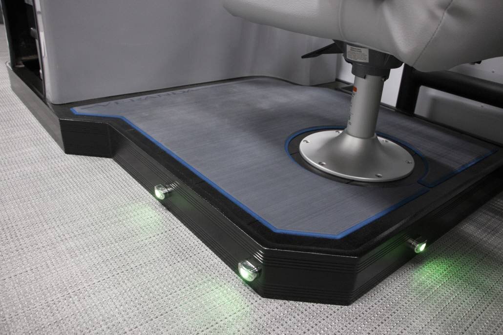 Bluetooth Stereo Audio Bazooka Amplified Bass Tube Four-corner Couch Seating Black Powder Coat Fence Rails Rear Entry Gate Rotational Molded Wood-Free Seat Bases w/Water Management and Storage Black Powder Coat Bimini Frames Black Bimini Canvas Full-length Keels Full-length M/Saddle Brackets Hydraulic Steering Island Green, Navy, or Black and Grey Exterior Accents Black Powder Coat Stainless Tow Bar Stainless Boarding Ladder Black Powder Coat SeaDek-lined Raised Helm RGB Controller w/RGB Lighted Cup Holders at the Helm Dolphin Grey Upholstery w/Island Green, Navy, or Black Accent |