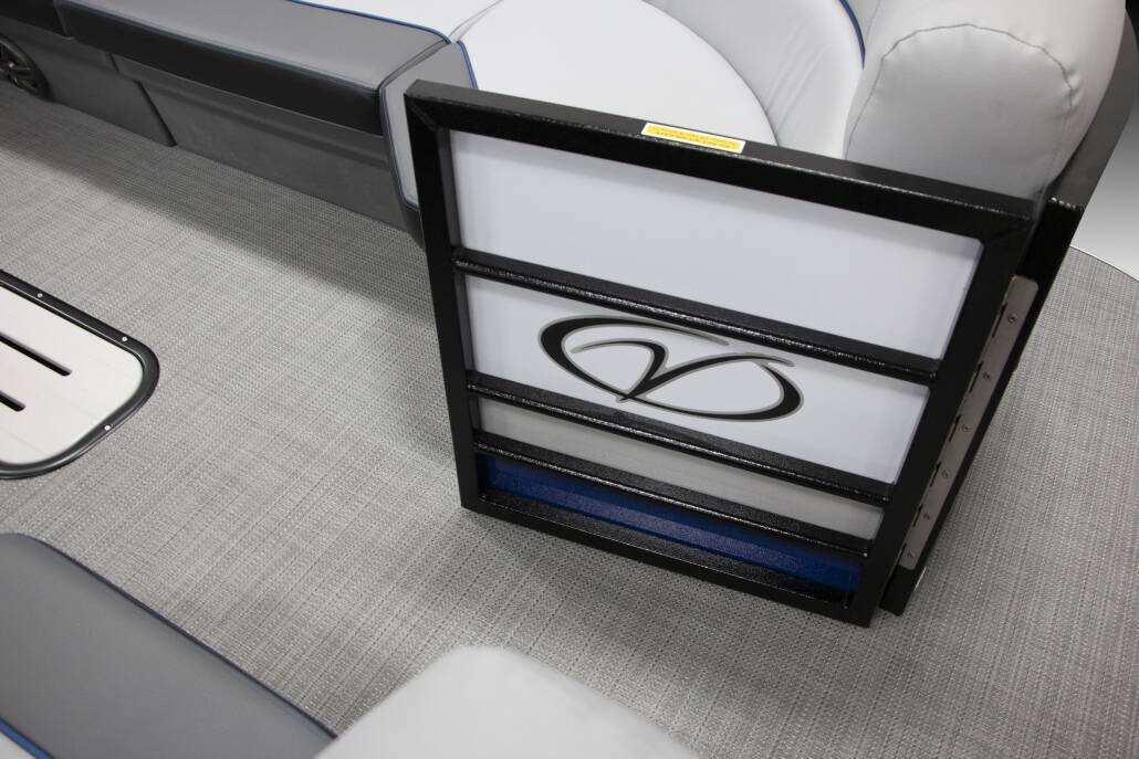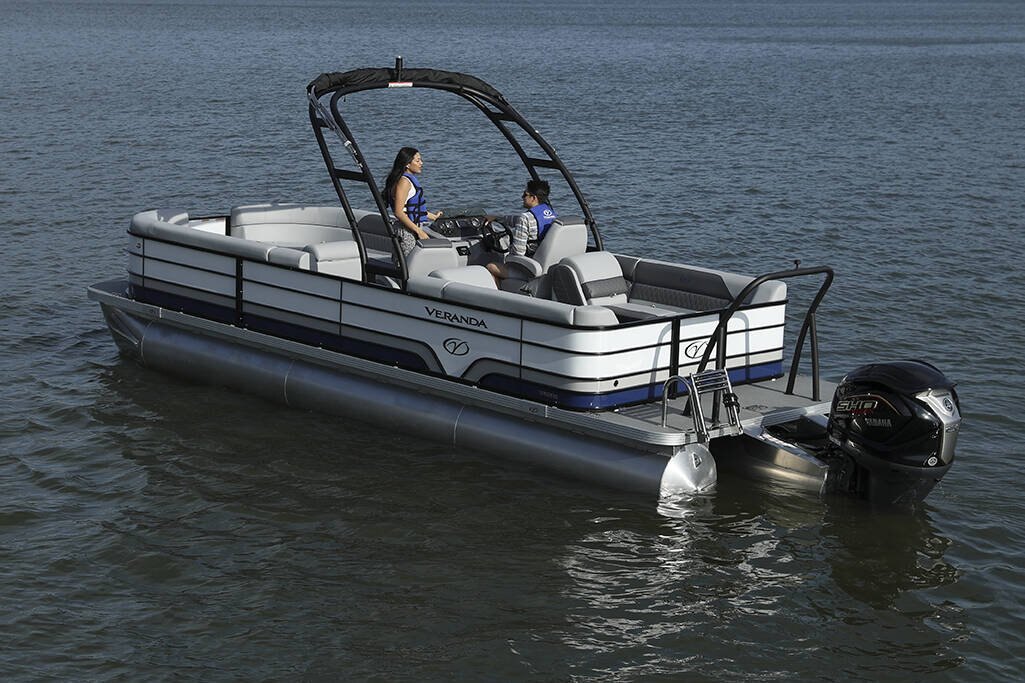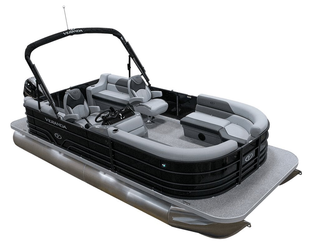 The saying “good things come in threes” hits the bullseye with the new Vista Sport. Customers can choose from 20, 22, and 25-foot lengths and black, island green, or navy accent colors. A 25″ Triple-toon Performance Package comes standard and provides greater horsepower and performance. The all-new Vista Sport is ideal for water sports enthusiasts due to the hydraulic steering, tow bar, boarding ladder, and optional Extreme Tower Package. A bundle of luxury standard features will maximize your comfort and entertainment, including reclining chairs and four-corner couch seating in Dolphin Grey, an open storage area under the console for the cooler, a Kicker Bluetooth audio system with four 6.5″ Clarion speakers and an 8″ Bazooka subwoofer, and RGB controller with lighted cupholders at the helm. Captains will appreciate the black powder-coat aluminum and SeaDek-lined raised helm platform and courtesy light when navigating. The new Veranda Vista Sport is your affordable and stylish passport to water sports excellence! |