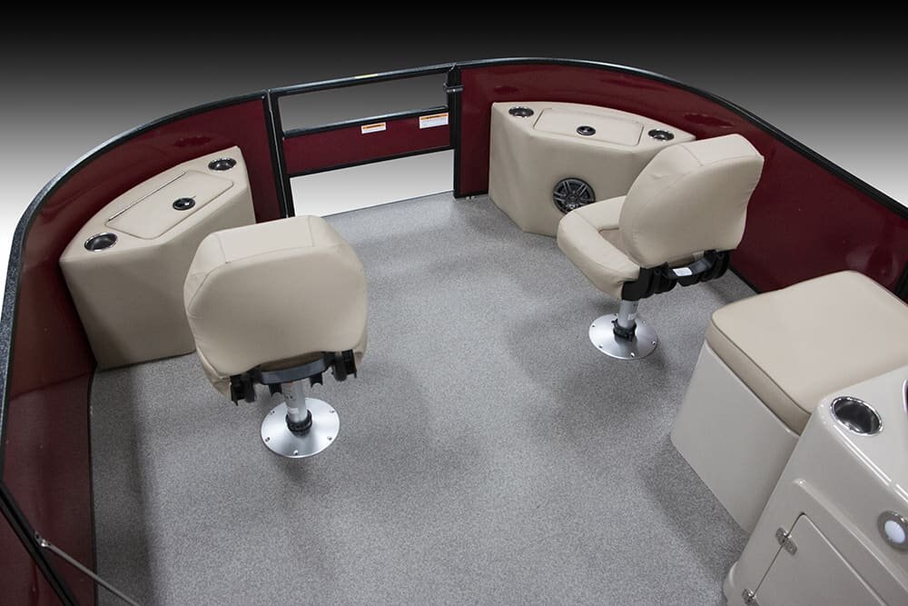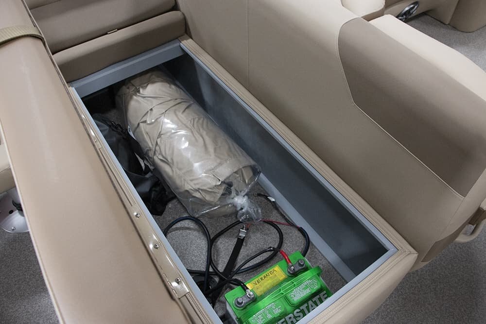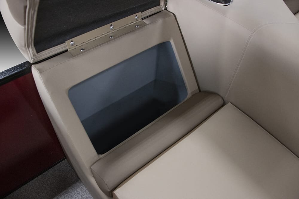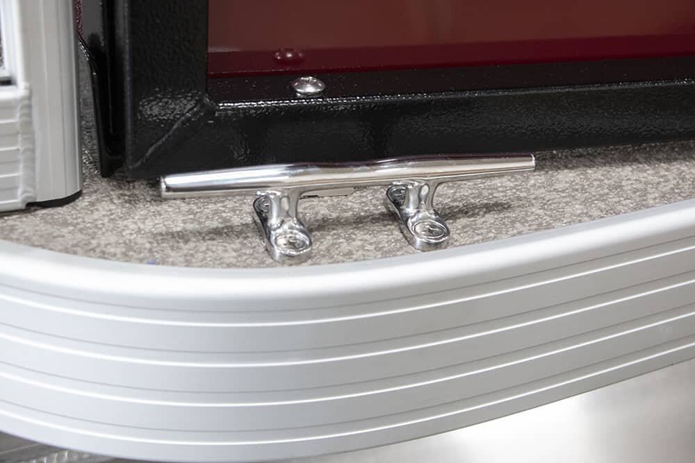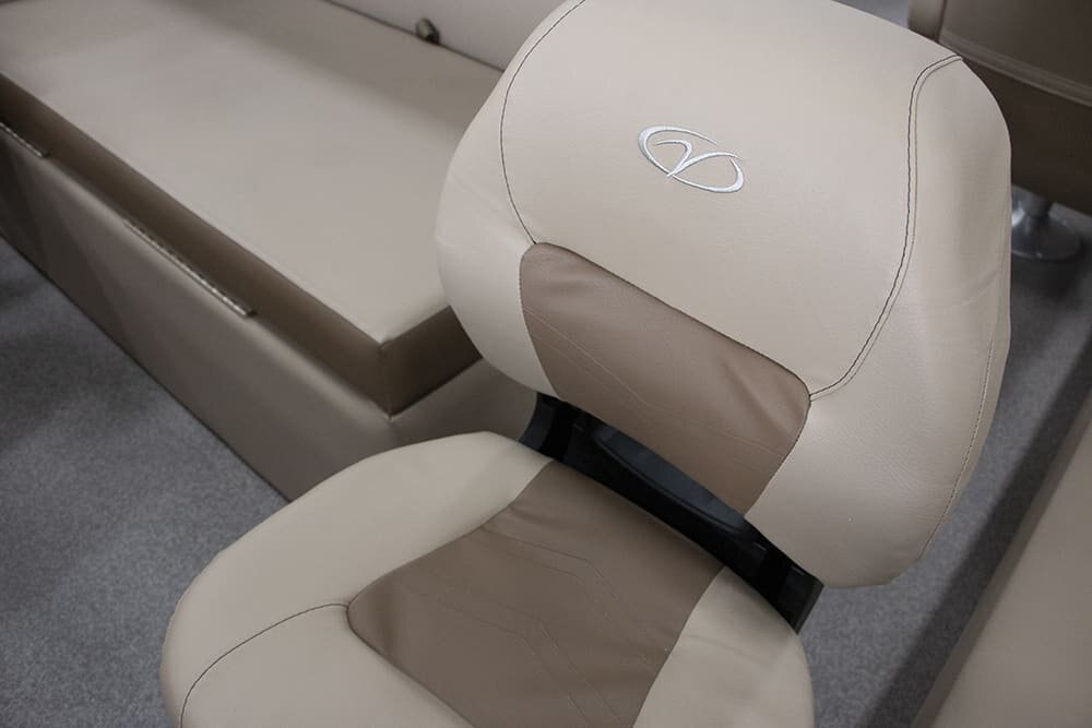 | Patented All-Aluminum All-Welded Interlocking Deck System Fiberglass Console w/Vinyl Top Horn w/Stainless Grill Hour Meter L.E.D. Navigation & Anchor Lights L.E.D. Courtesy Light on Console Pebble Beach Vinyl Tan Flooring or Pebble Beach Vinyl Grey Flooring Privacy Room Rear Entry Gate w/Ladder Reclining Helm Seat GPS Center Dash Speed, Tach, Fuel and Trim Gauges Stainless Cup Holders Stainless Docking Lights Stainless 6” Deck Cleats Stainless Navigation and Anchor Lights Stainless Quick Release Bimini Hardware Trolling Motor Harness Under Console Storage 25” Triple-Toon Performance Package Hydraulic Tilt Steering Full-length Lifting Strakes Integrated Performance Motor Pod Industry-Leading 0.100 Gauge Pontoon Tubes Veranda Fish 4-Point Fish Seating Group High Back Recling Helm Chair 4 Fishing Seats Mid-Cabin L-Chaise Bench w/Onboard Cupholders Aft Sun Deck w/Expanded Storage Free-Standing Livewell w/Seat Cushion Lid Rod Box 9’ Bimini Blended Latte or Carbon and Dove Upholstery Bluetooth Stereo Audio Bow Entry Half-Gate Powder Coat Rails w/Choice of Color Rotational Molded Wood-Free Seat Bases w/Water Management and Storage Ratchet Mooring Cover |