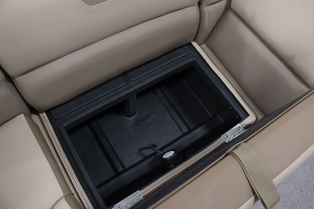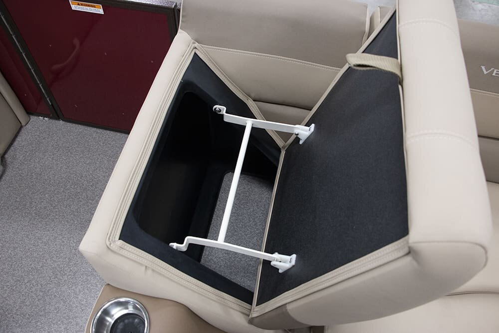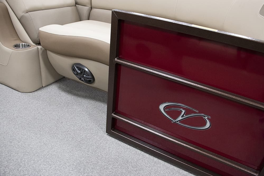 | Patented All-Aluminum All-Welded Interlocking Deck System Fiberglass Console w/Vinyl Top Horn w/Stainless Grill Hour Meter L.E.D. Navigation & Anchor Lights L.E.D. Courtesy Light on Console Pebble Beach Vinyl Tan Flooring or Pebble Beach Vinyl Grey Flooring GPS Center Dash Privacy Room Rear Entry Gate w/Ladder Reclining Helm Seat Speed, Tach, Fuel and Trim Gauges Stainless Cup Holders Stainless Docking Lights Stainless 6” Deck Cleats Stainless Navigation and Anchor Lights Stainless Quick Release Bimini Hardware Under Console Storage 25” Triple-Toon Performance Package Hydraulic Tilt Steering Full-Length Lifting Strakes Integrated Performance Motor Pod Industry-Leading 0.100 Gauge Pontoon Tubes Veranda Fish 2-Point Fish Seating Group Highback Reclining Helm Chair 2 Forward Lounges 2 Aft Fishing Seats Mid-Cabin L-Chaise Bench w/Onboard Cupholders Aft Sun Deck w/Expanded Storage Free-Standing Livewell w/Seat Cushion Lid Blended Latte or Carbon and Dove Upholstery Bluetooth Stereo Audio 9’ Bimini Powder Coat Rails w/Choice of Color Rotational Molded Wood-Free Seat Bases w/Water Management and Storage Ratchet Mooring Cover |