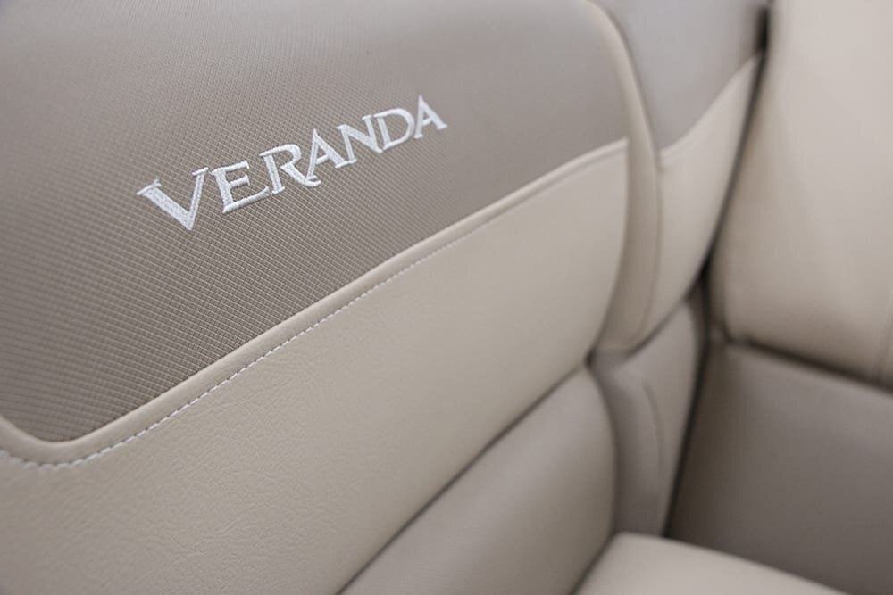 Versatility sets the Veranda F2 apart from other pontoon boats. Kick back and enjoy the all-encompassing luxury of custom-crafted furniture, such as bench-style group seating up front and two fishing seats in the rear, plus premium amenities. Veranda’s no-wood lifetime of enjoyment construction means Veranda Luxury Pontoons is the best choice! Take a seat and try to catch that evening’s dinner or just take a swim. Cruise, play or fish the day away with the Veranda Fish Series F2. |