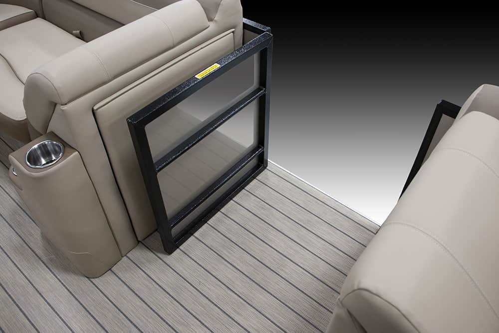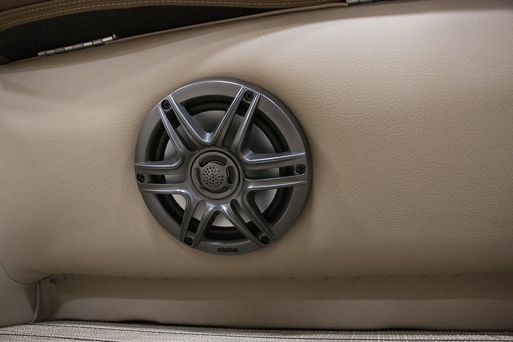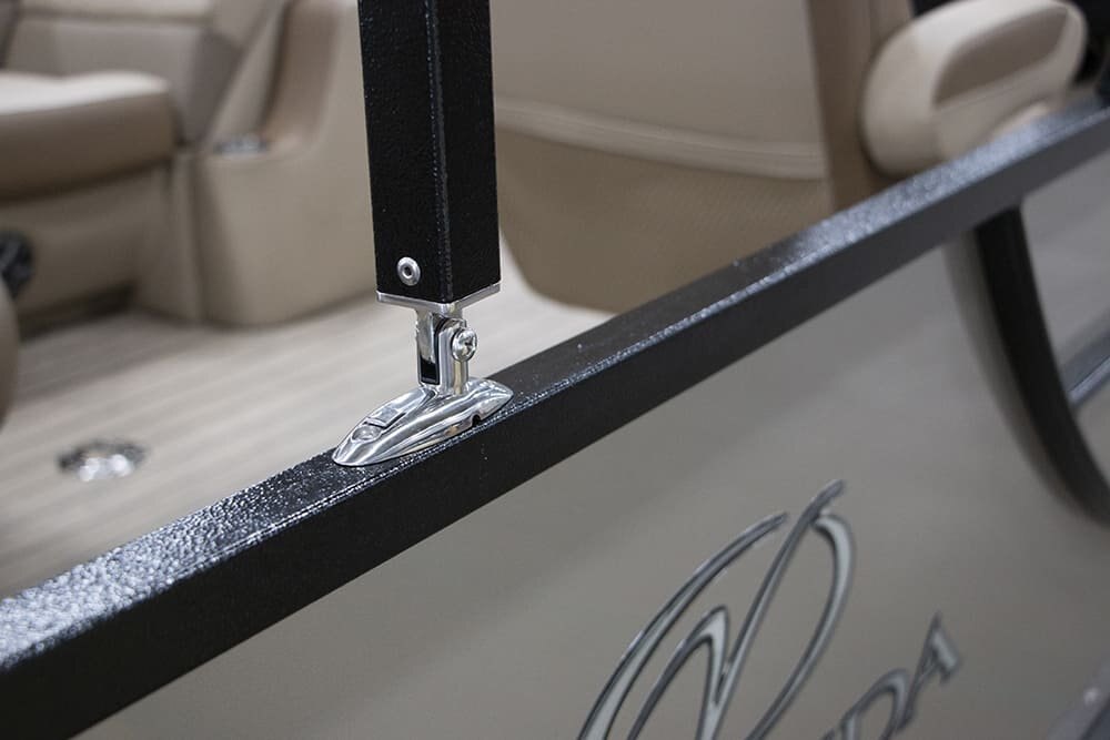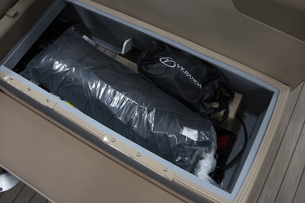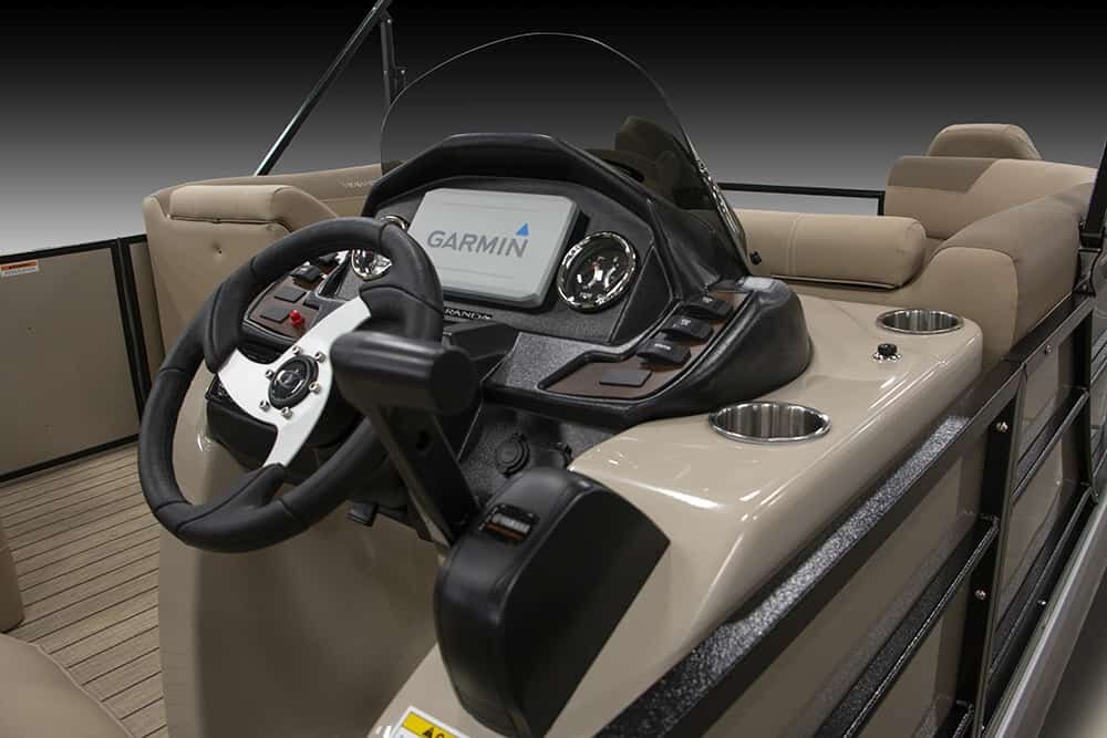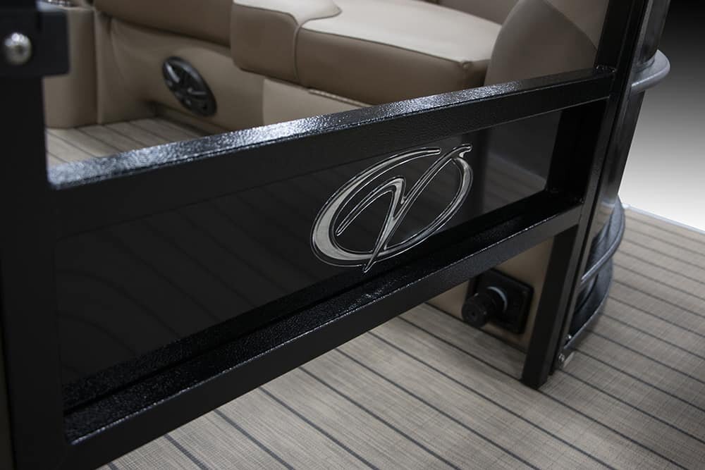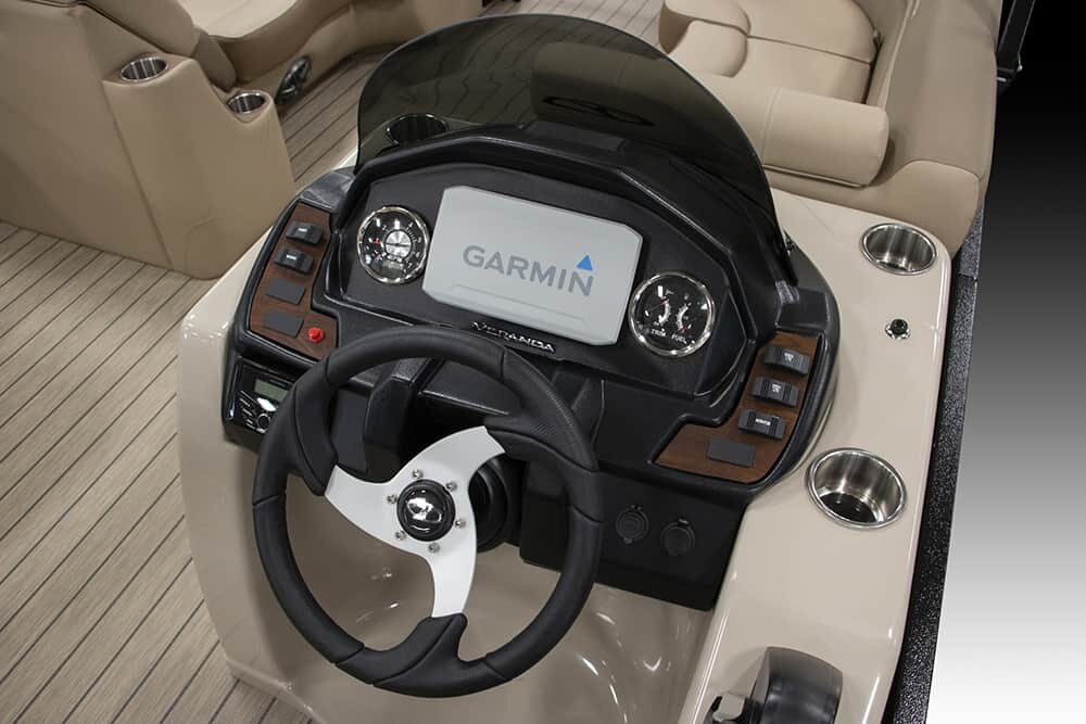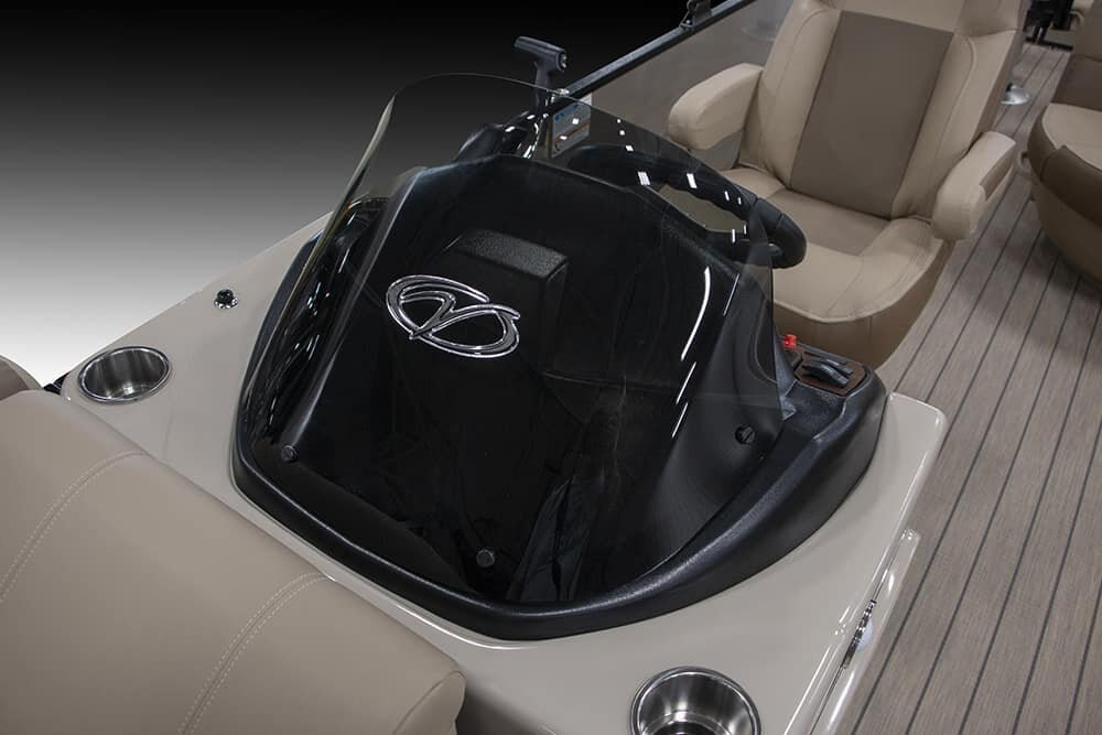 | Patented All-Aluminum All-Welded Interlocking Deck System Fiberglass Console w/Vinyl Top Horn w/Stainless Grill Hour Meter L.E.D. Navigation & Anchor Lights L.E.D. Courtesy Light on Console Pebble Beach Vinyl Tan Flooring or Pebble Beach Vinyl Grey Flooring GPS Center Dash Privacy Room Rear Entry Gate w/Ladder Speed, Tach, Fuel and Trim Gauges Stainless Cup Holders Stainless Docking Lights Stainless 6” Deck Cleats Stainless Navigation and Anchor Lights Stainless Quick Release Bimini Hardware Trolling Motor Harness Under Console Storage 25” Triple-toon Performance Package Hydraulic Tilt Steering Full-Length Lifting Strakes Integrated Performance Motor Pod Industry-Leading 0.100 Gauge Pontoon Tubes Veranda Fish 2plus2 Seating Group Highback Reclining Helm Chair 2 Forward Chaise Lounges w/Onboard Cupholders 2 Bow Fishing Seats 2 Aft Fishing Seats Mid-Cabin L-Chaise Bench w/Onboard Cupholders Aft Sun Deck w/Expanded Storage Free-Standing Livewell w/Seat Cushion Lid Blended Latte or Carbon and Dove Upholstery Bluetooth Stereo Audio 9’ Bimini Bow Entry Half-Gate Powder Coat Rails w/Choice of Color Rotational Molded Wood-Free Seat Bases w/Water Management and Storage Ratchet Mooring Cover |
