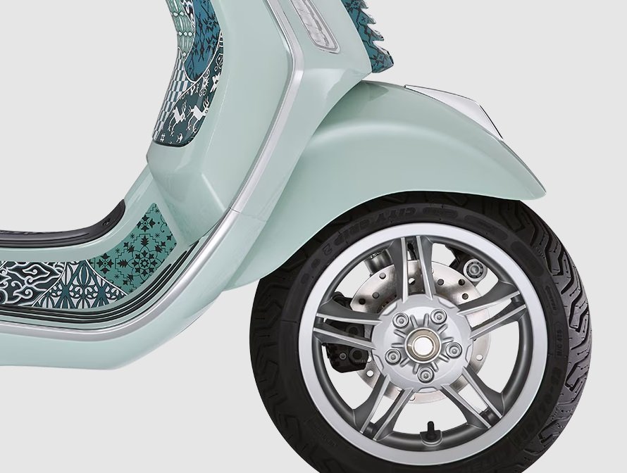 The Vespa Primavera Batik is a homage to life, travel and discovery. The elaborate, harmonious batik style is a perfect match for the smooth, reactive 5 Euro i-get engine, creating an irresistible mix of agility and aesthetic appeal for an engaging riding experience that invites you to head off in search of unforgettable experiences and new adventures.