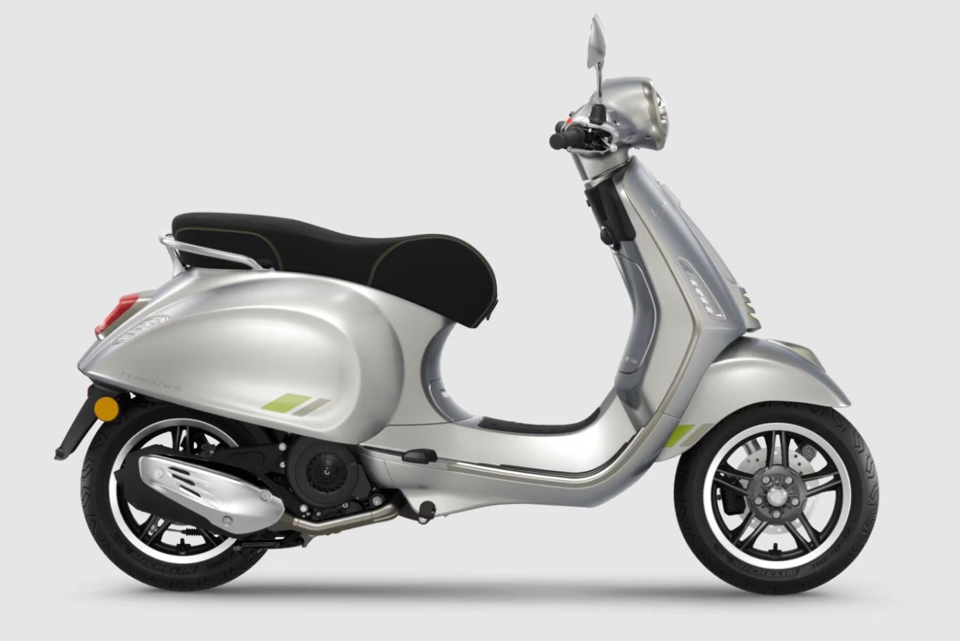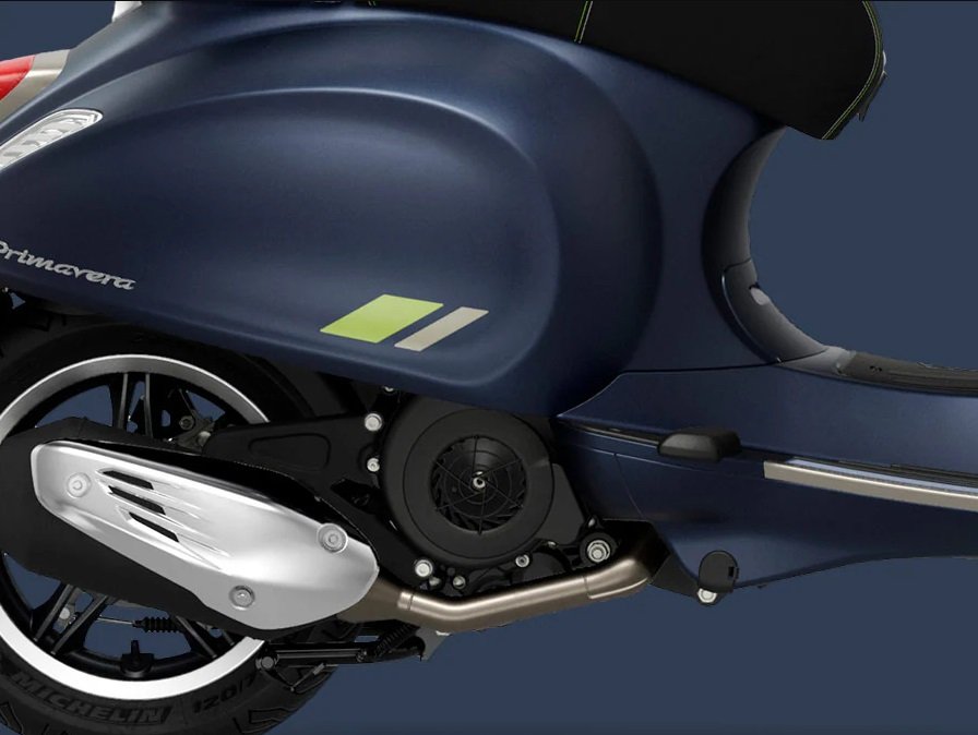 The Vespa Primavera Tech adds technological innovation to the Vespa Primavera’s authentic soul to create a style that is modern and exclusive. Chrome finishes and iridescent colours combine to perfection in a striking play of light, while contrasting fluro-green details inject a high-tech, dynamic touch.