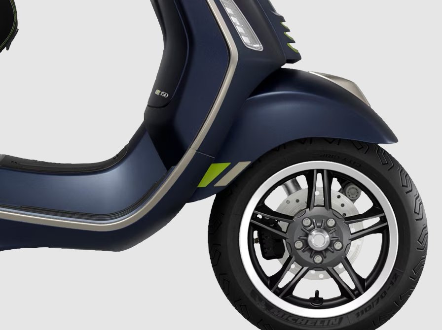 The Vespa Primavera Tech knows how to make a splash. Two-tone rims, intense iridescent colour schemes, chrome finishes and fluro-green details all combine to express progress in a modern style.