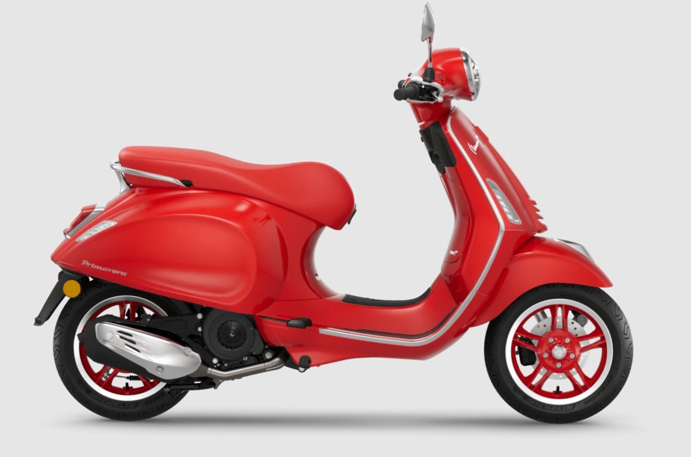 The (VESPA PRIMAVERA)RED represents efficiency and agility, with its Euro 5+ i-get engine delivering a reliable, fluid riding experience that makes it ideal for leaving the city roads behind and taking its striking (RED) message further afield.