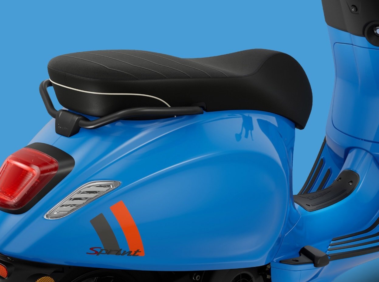 The characteristic 6-spoke spiral black rims and the distinctive seat with carefully-selected textures and materials reflect the Vespa Sprint S’s sporty soul and attention to detail.