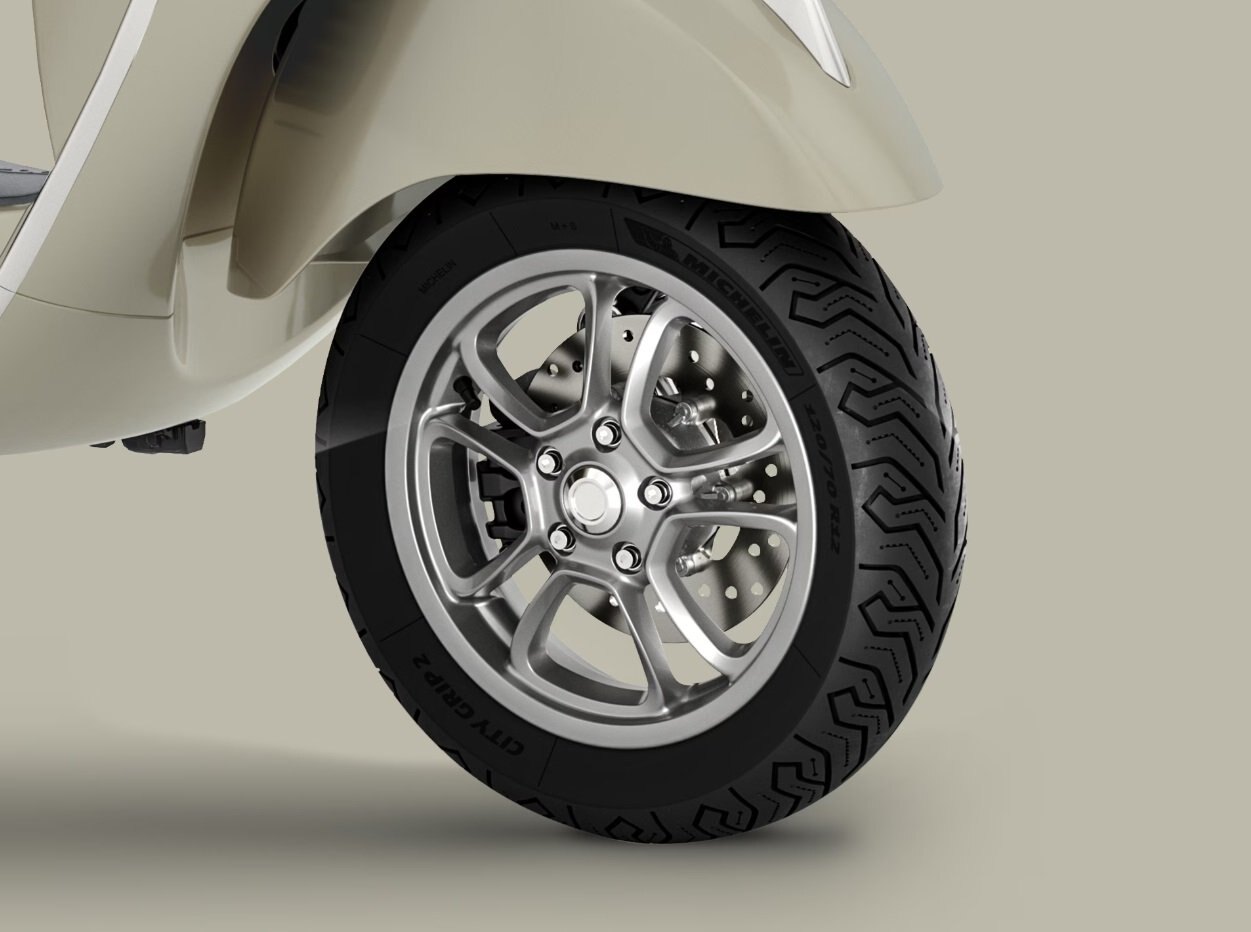 The appeal of the Vespa Gts is further enhanced by a full-LED headlight. The tail light is also full-LED, improving visibility on the road and showcasing Vespa's distinctive design.