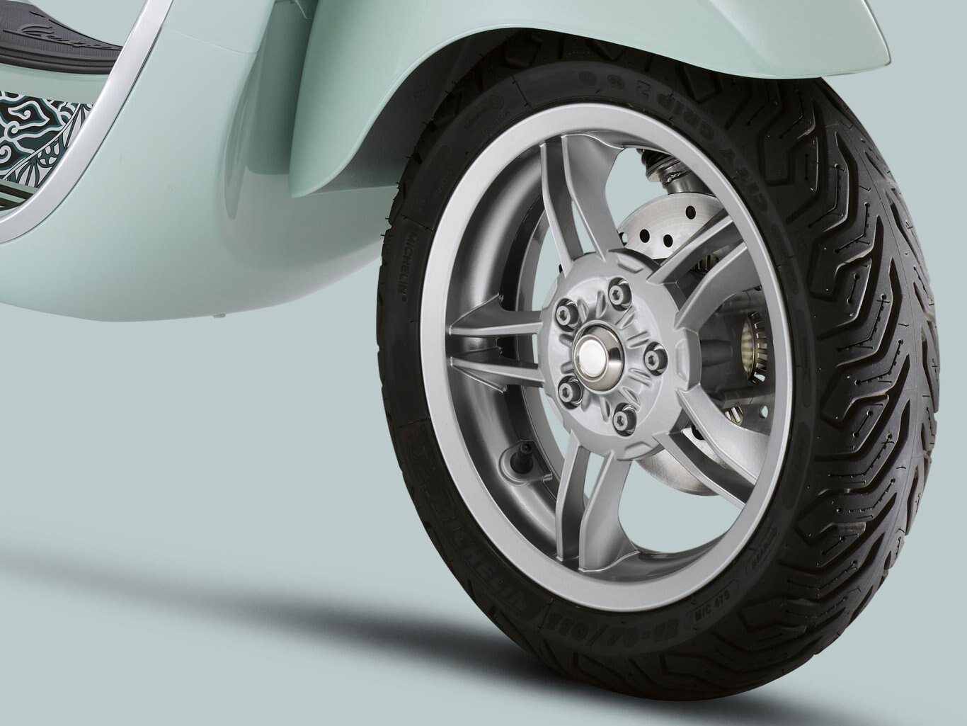 The Vespa Primavera Batik 125 is equipped with a single hydraulic shock absorber, single-channel ABS for improved braking safety, and a 125-cc 3V electronic injection engine for outstanding performance and efficiency.