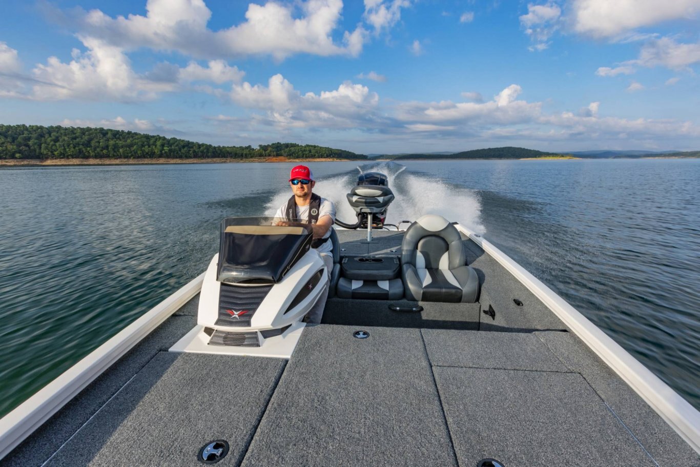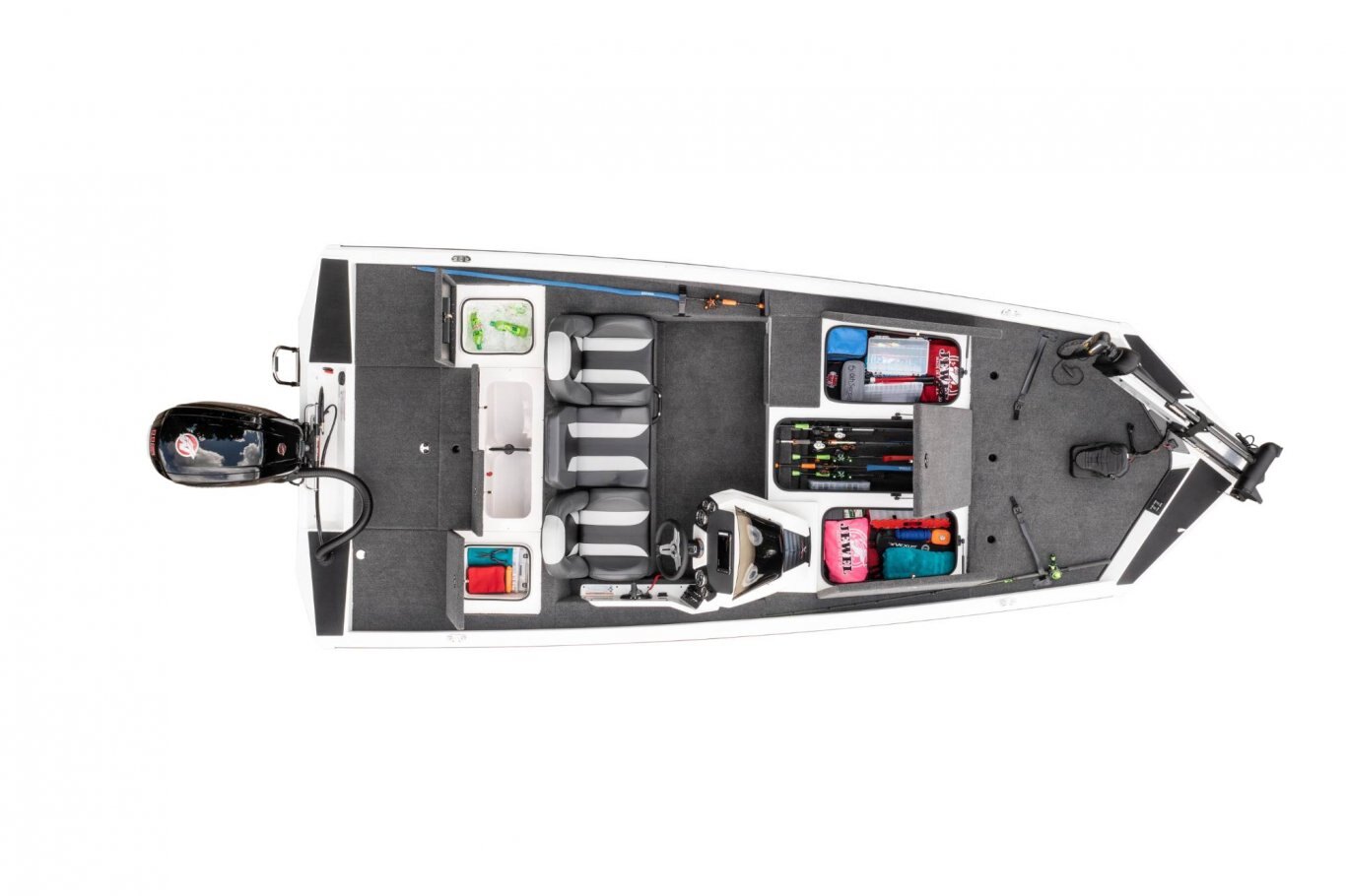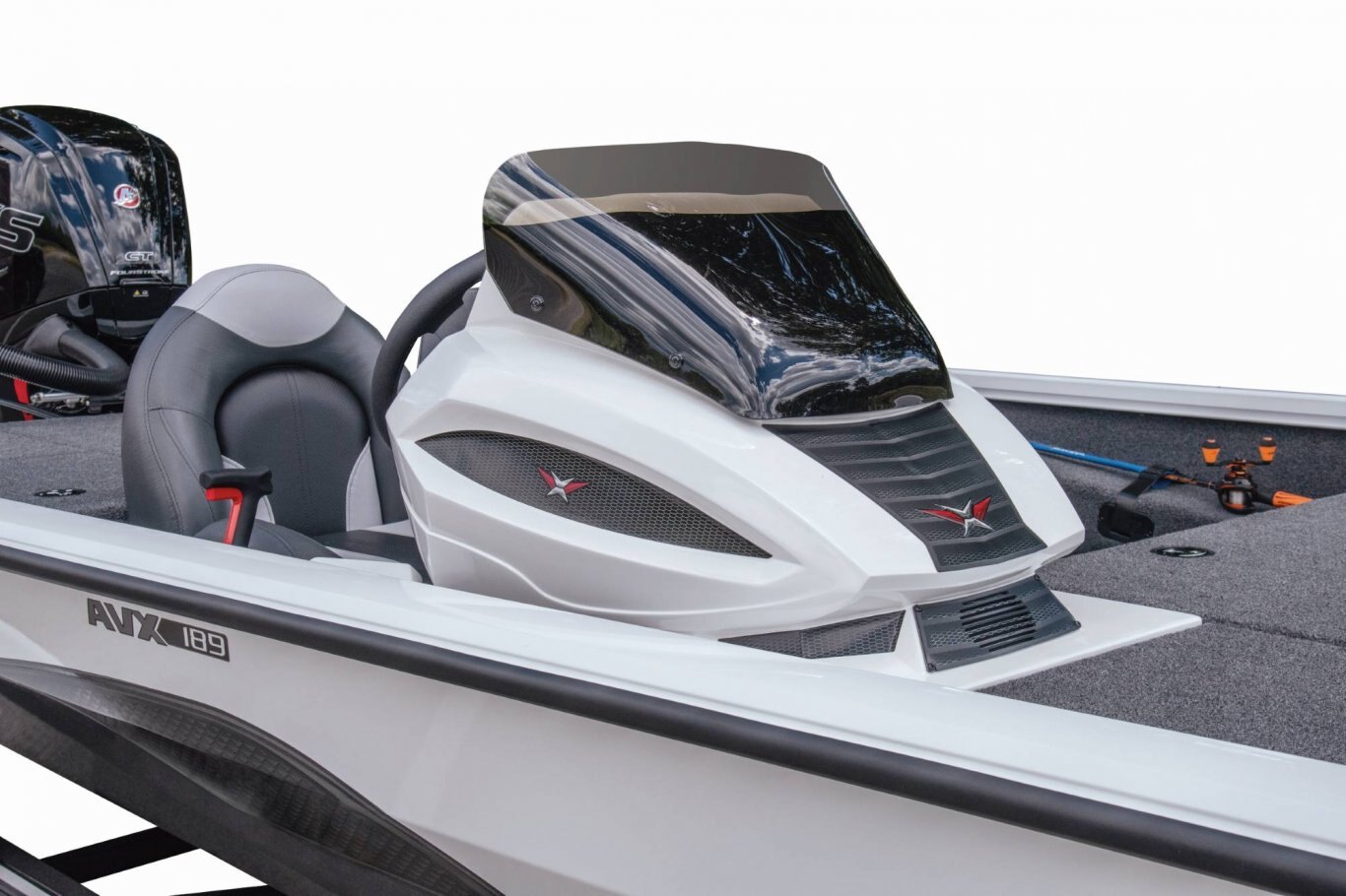 From bass and crappie to a host of panfish and more, now it’s even easier to confidently corner everything on the water. Not only does the AVX189 deliver exceptional quality, comfort, and performance, it does it all without compromising your budget. Measuring just over 18 ½ feet in length, the 189 is ideally sized, making it easy to launch, load, maneuver, and tow. The revolutionary design rides on an all-new, high performance pad hull with an increased deadrise for an exceptionally smooth, dry, and responsive ride. Start to finish, it’s a commitment to advanced engineering that’s reinforced with the added strength of our Vector Force™ transom and Dense Base™ hull construction. The roomy forward deck of the 189 includes a factory-rigged Minn Kota Edge. Also up front, a huge, 8-foot center rod box is surrounded by a pair of cavernous storages. Each is equipped with stainless steel compression latches, raised lip dams, and weather trim seals. It’s a wet-weather system specifically designed to help put the ‘dry’ back in aluminum boat dry storage. In the cockpit, instrumentation and electronics are highlighted by speed, tach, fuel, trim, and water pressure gauges along with a host of sealed, lit-tip toggle switches. Fiberglass-infused components – like the custom console with finished lower radiuses, contour-fitted side panel, reinforced gear storage, insulated cooler, and tournament-ready livewell – permeate the roomy layout. Centering the rear deck, the fiberglass well offers even more best-in-class features. Equipped with recirculating aeration, an auto fill valve (no leaky standpipe to set and remove), pump-out, and anti-splash ring, the feature-rich 189 is loaded with confidence. Even the storages surrounding the rear well are set apart from the crowd. These solid, gel-coated compartments aren’t just larger, they’re encased in foam, making them noticeably stronger and more structurally integrated than the typical, thin-walled plastic drop-ins found in other designs. Additional advantages include a larger fuel tank, two-tone Hard Case™ paint, performance-styled seating, and a precision-matched trailer. Combined with the ultra-solid feel and sound-dampening benefits of our upright, level foam flotation, this is the AVX189. With so many standard features, it’s an unparalleled rig, Built to Perform and Priced to Move™! |