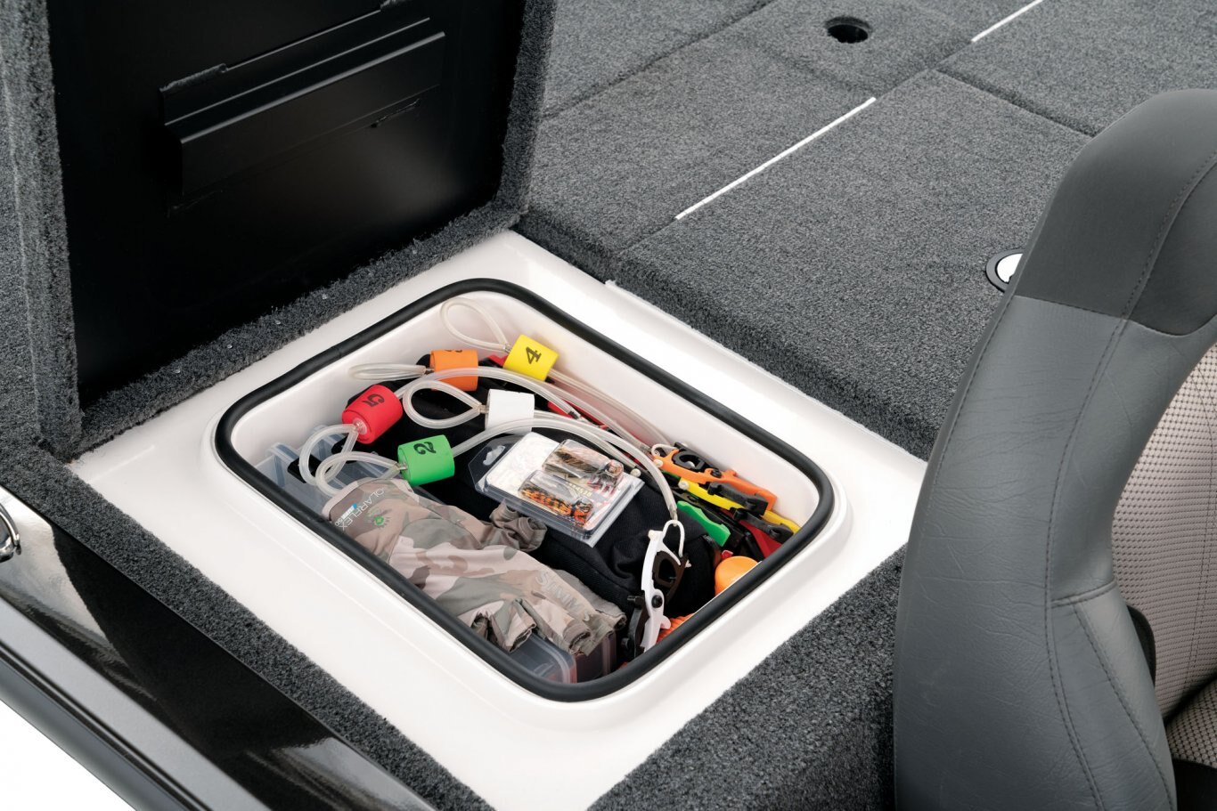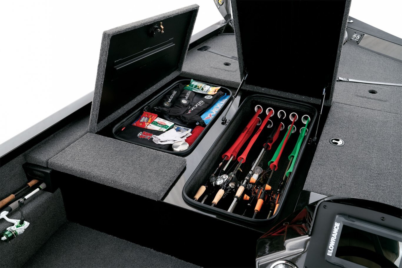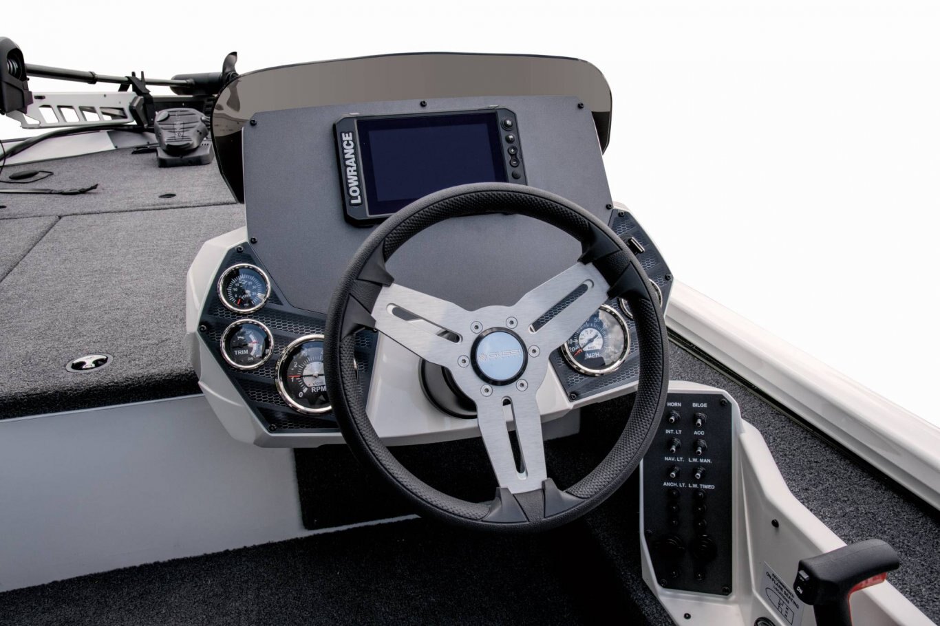 From bass and crappie to a host of panfish and more, now it’s even easier to confidently corner everything on the water. Not only does the AVX189 deliver exceptional quality, comfort, and performance, it does it all without compromising your budget. Measuring just over 18 ½ feet in length, the 189 is ideally sized, making it easy to launch, load, maneuver, and tow. The revolutionary design rides on an all-new, high performance pad hull with an increased deadrise for an exceptionally smooth, dry, and responsive ride. Start to finish, it’s a commitment to advanced engineering that’s reinforced with the added strength of our Vector Force™ transom and Dense Base™ hull construction. The roomy forward deck of the 189 includes a factory-rigged Minn Kota Edge. Also up front, a huge, 8-foot center rod box is surrounded by a pair of cavernous storages. Each is equipped with stainless steel compression latches, raised lip dams, and weather trim seals. It’s a wet-weather system specifically designed to help put the ‘dry’ back in aluminum boat dry storage. In the cockpit, instrumentation and electronics are highlighted by speed, tach, fuel, trim, and water pressure gauges along with a host of sealed, lit-tip toggle switches. Fiberglass-infused components – like the custom console with finished lower radiuses, contour-fitted side panel, reinforced gear storage, insulated cooler, and tournament-ready livewell – permeate the roomy layout. Centering the rear deck, the fiberglass well offers even more best-in-class features. Equipped with recirculating aeration, an auto fill valve (no leaky standpipe to set and remove), pump-out, and anti-splash ring, the feature-rich 189 is loaded with confidence. Even the storages surrounding the rear well are set apart from the crowd. These solid, gel-coated compartments aren’t just larger, they’re encased in foam, making them noticeably stronger and more structurally integrated than the typical, thin-walled plastic drop-ins found in other designs. Additional advantages include a larger fuel tank, two-tone Hard Case™ paint, performance-styled seating, and a precision-matched trailer. Combined with the ultra-solid feel and sound-dampening benefits of our upright, level foam flotation, this is the AVX189. With so many standard features, it’s an unparalleled rig, Built to Perform and Priced to Move™! |