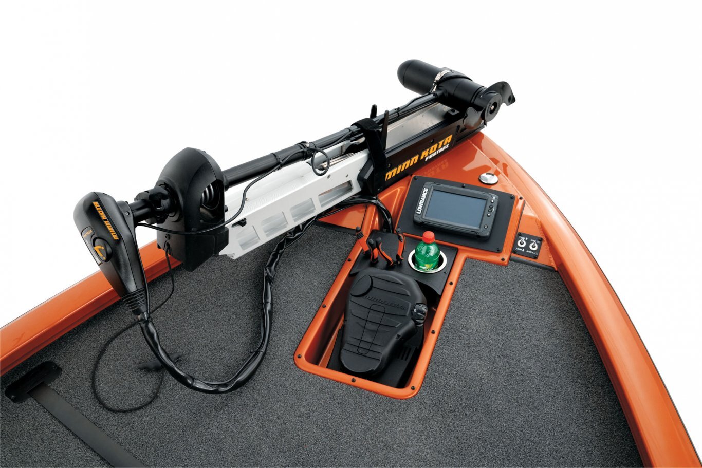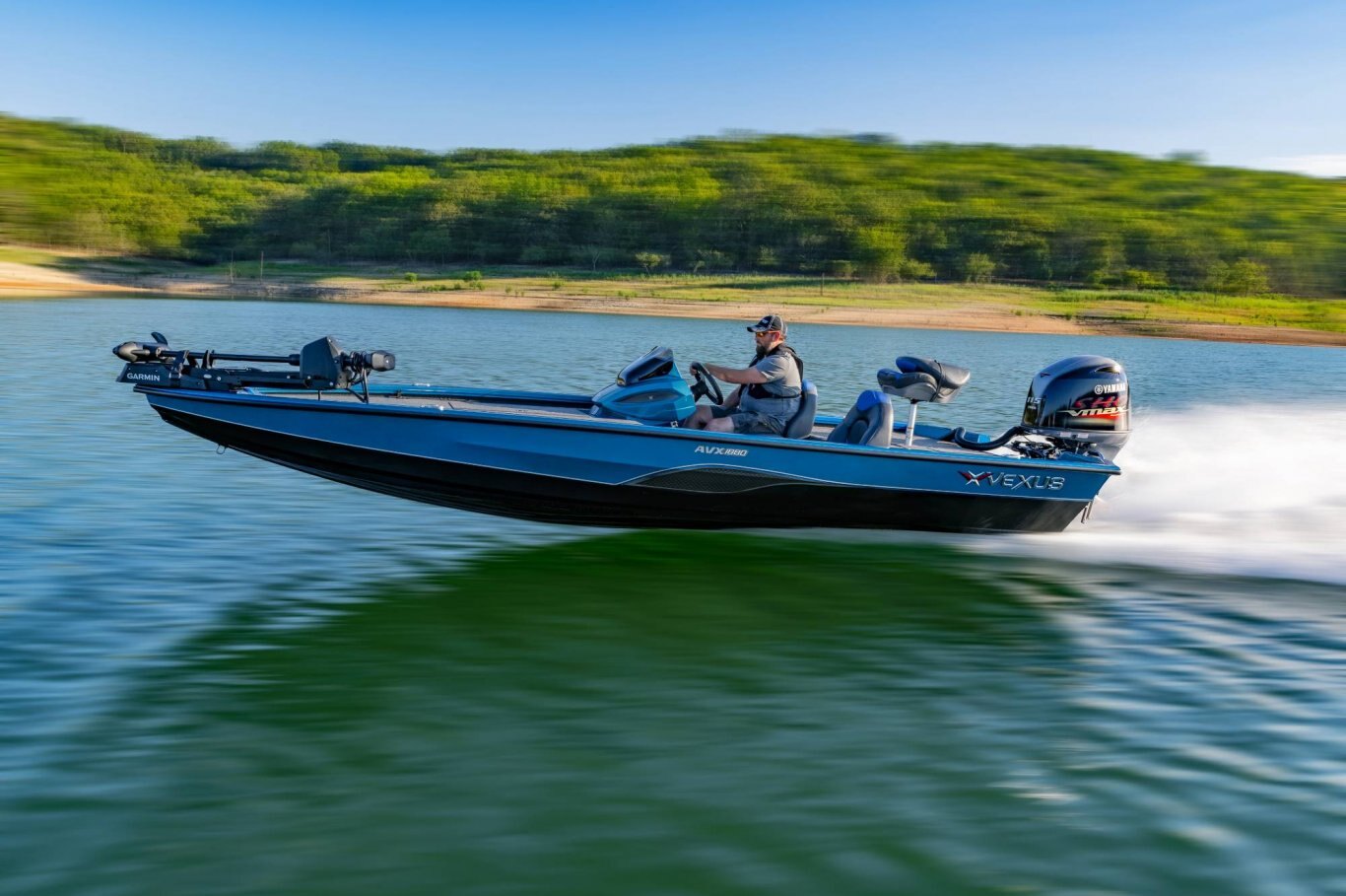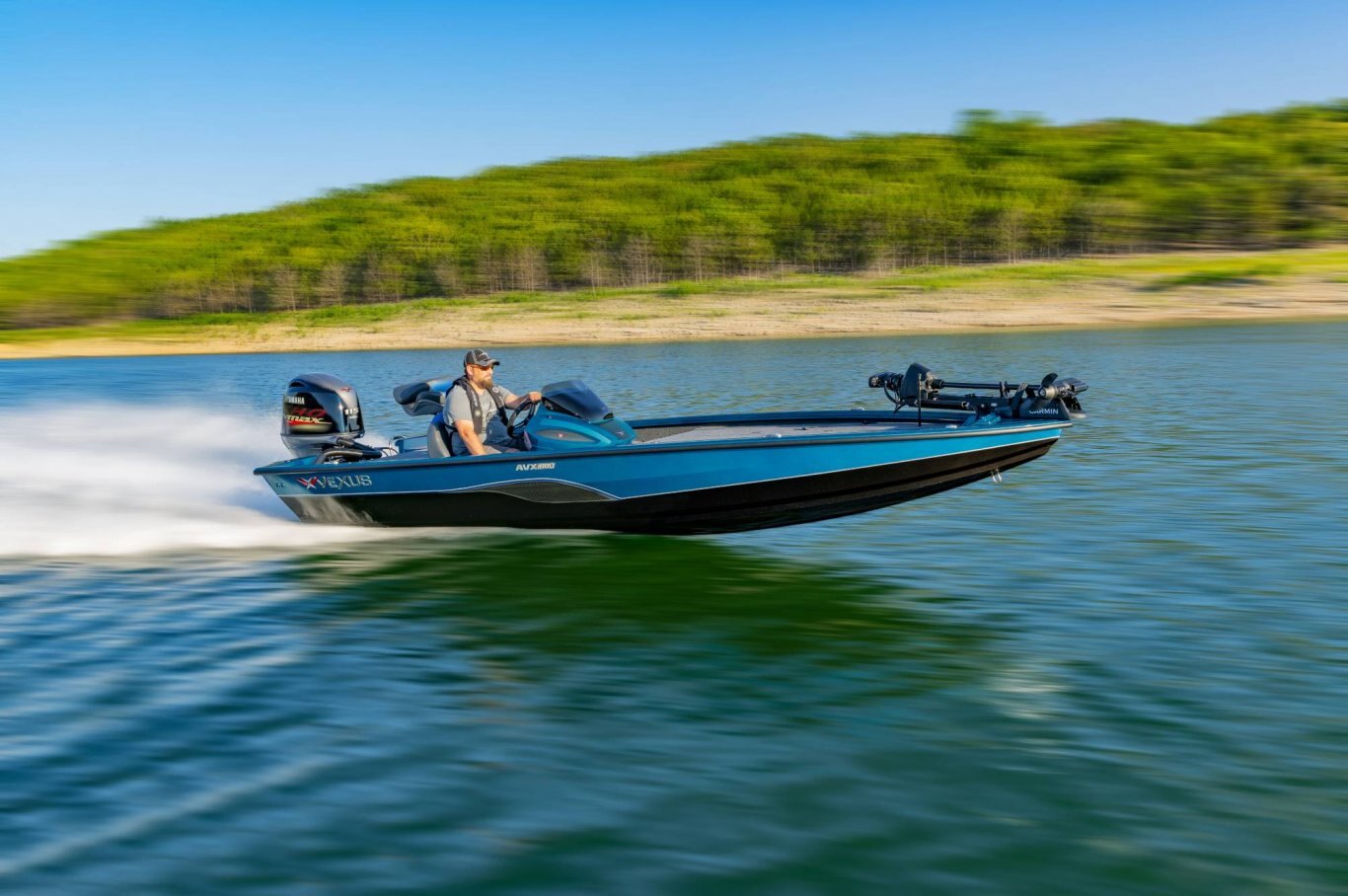 Custom-contoured lines, precision-tuned performance, and a world of advanced features… On and off the water, the AVX1880 is engineered to set a higher standard. Measuring 18’ 10” in length with a broad 95” beam, this sleek, hand-built machine is highlighted by an exceptionally smooth ride, responsive handling, and great price. As with each of our all-welded AVX designs, the 1880 is loaded with space and standard features. Up front, a Minn Kota Ultrex 80 covers the bow while a recessed trolling motor/bow station includes cup and tool holders, remote switches, and room for larger electronics.