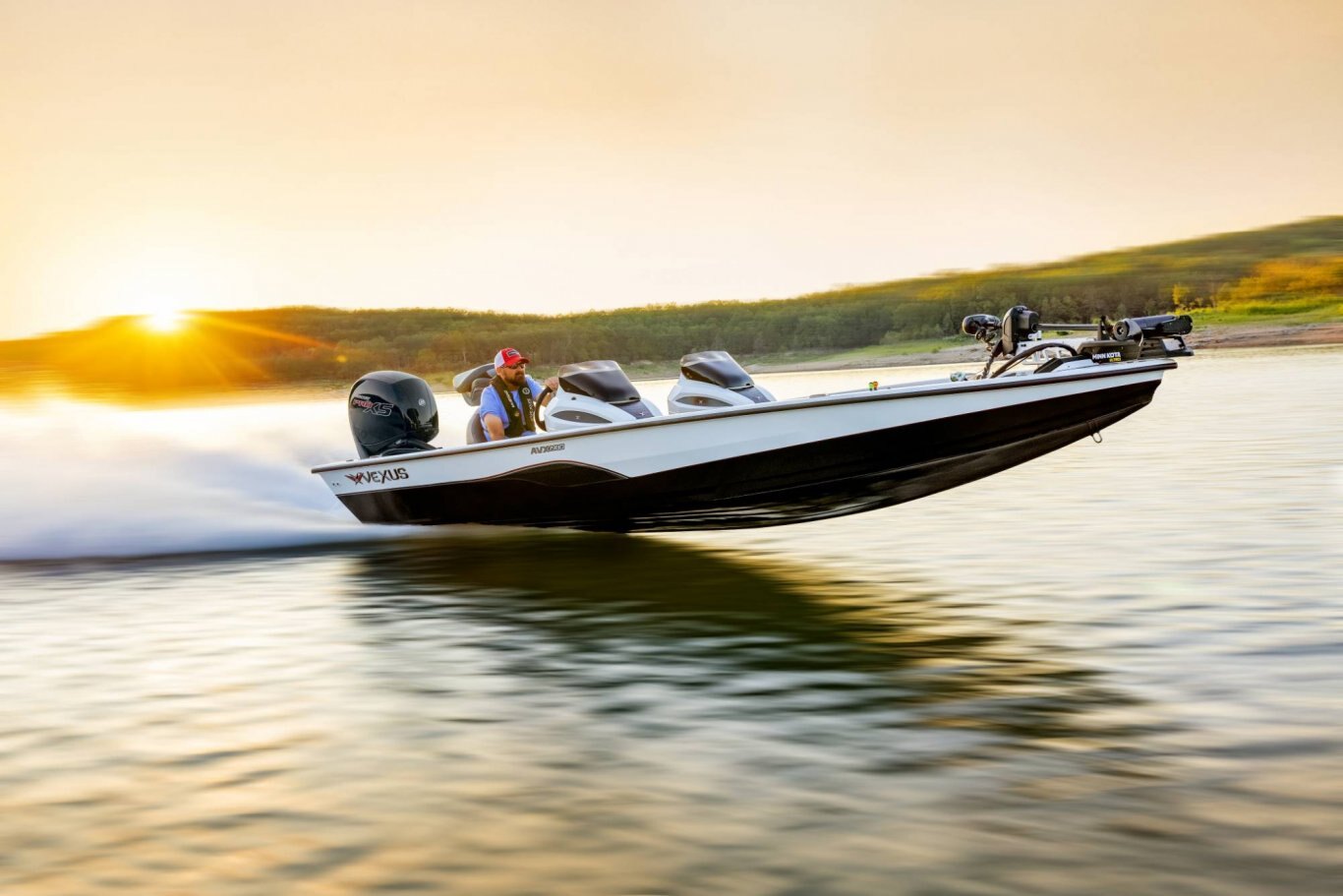 With so many best-and-first-in-class features, this Glass-Infused Aluminum Hybrid™ offers more space, more performance, more innovation, and more real-world advantages. Plus, it’s available with your choice of precision-matched outboards. The AVX1980. With its custom-built trailer, Dense-Base™ design, Hard Case™ paint, and Trac Tight™ handling, this is a seriously-equipped tournament rig that looks, feels, and performs like glass – all at a fraction of the price. |