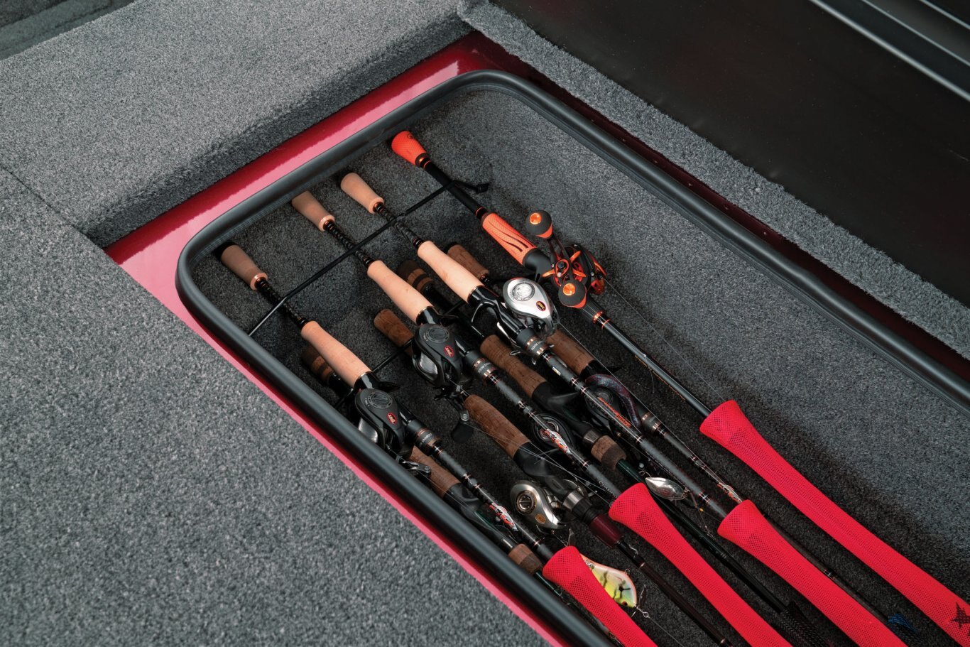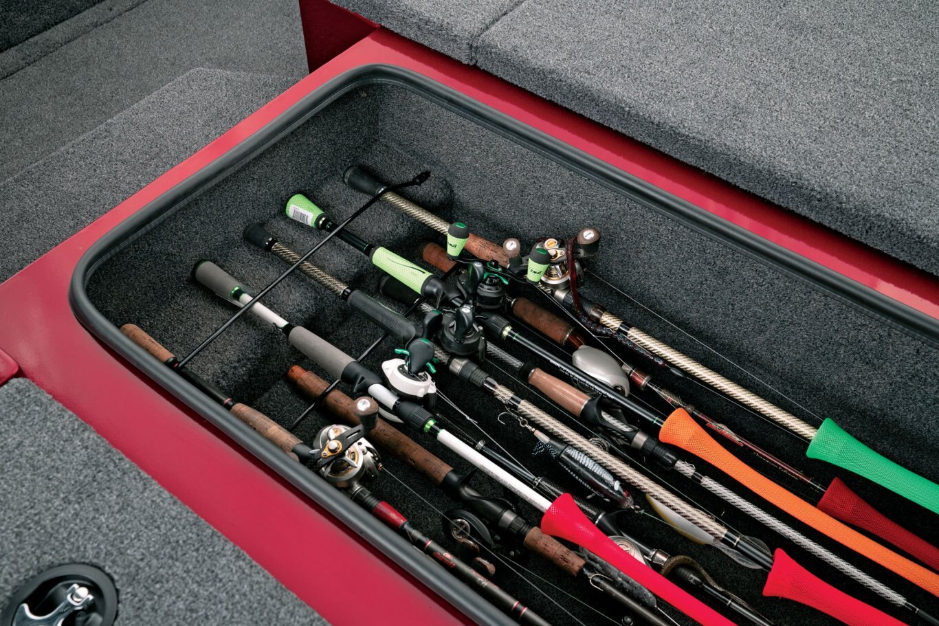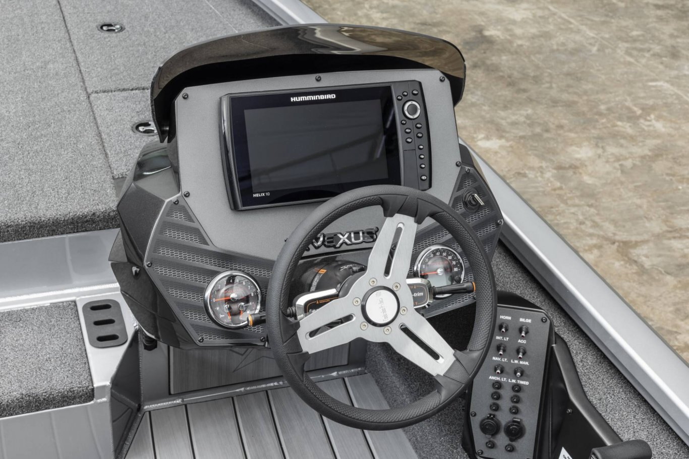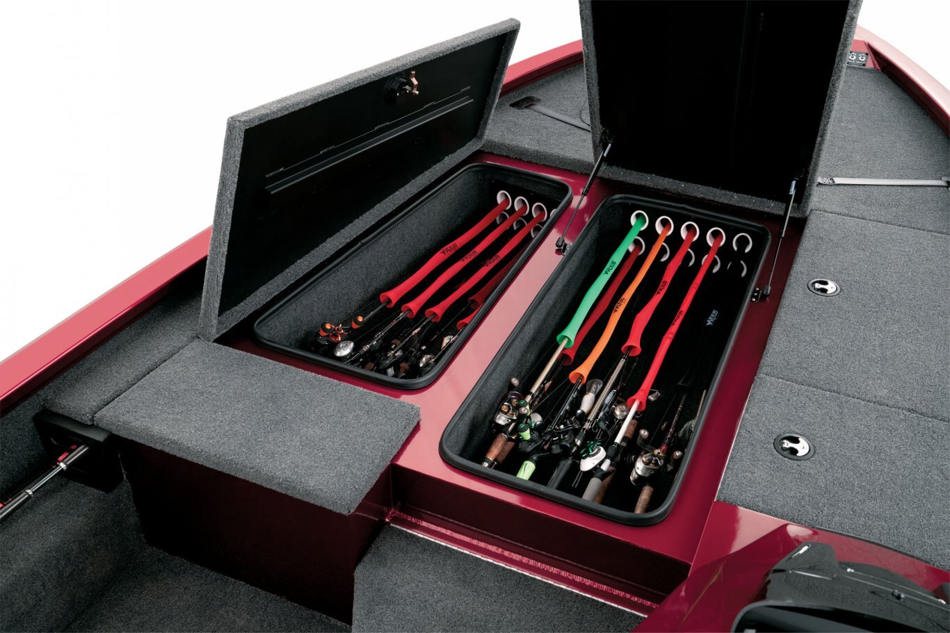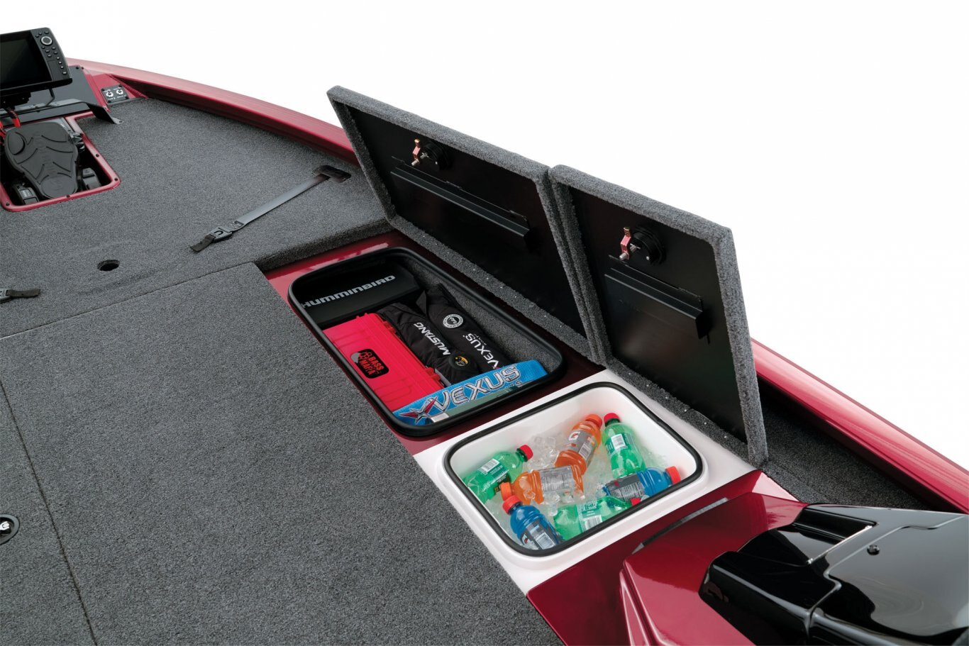 From its uncompromising stance and head-turning good looks to its tournament-bred engineering and incredibly long list of standard features, the aluminum AVX1980 is so evolved it’s often mistaken as a hand-built fiberglass design. Built on a groundbreaking, high performance pad hull, this 19’ 10” rig enjoys a broad 95” beam, quick hole shots, responsive handling, and an exceptionally smooth ride. Inside, the 1980 is loaded with an equally impressive set of advantages. Smooth, stretch-formed gunnels deliver an advanced look and even more interior room. Likewise, the massive decks are inundated with storages so large they literally dwarf other aluminum designs. You’ll see it in the 8 ½ foot center rod locker, vast gear compartments, spacious rear power compartment, and the extra leg room at the console.
