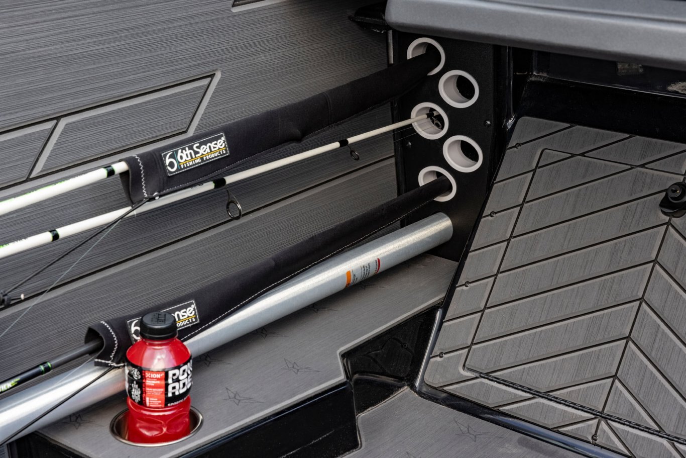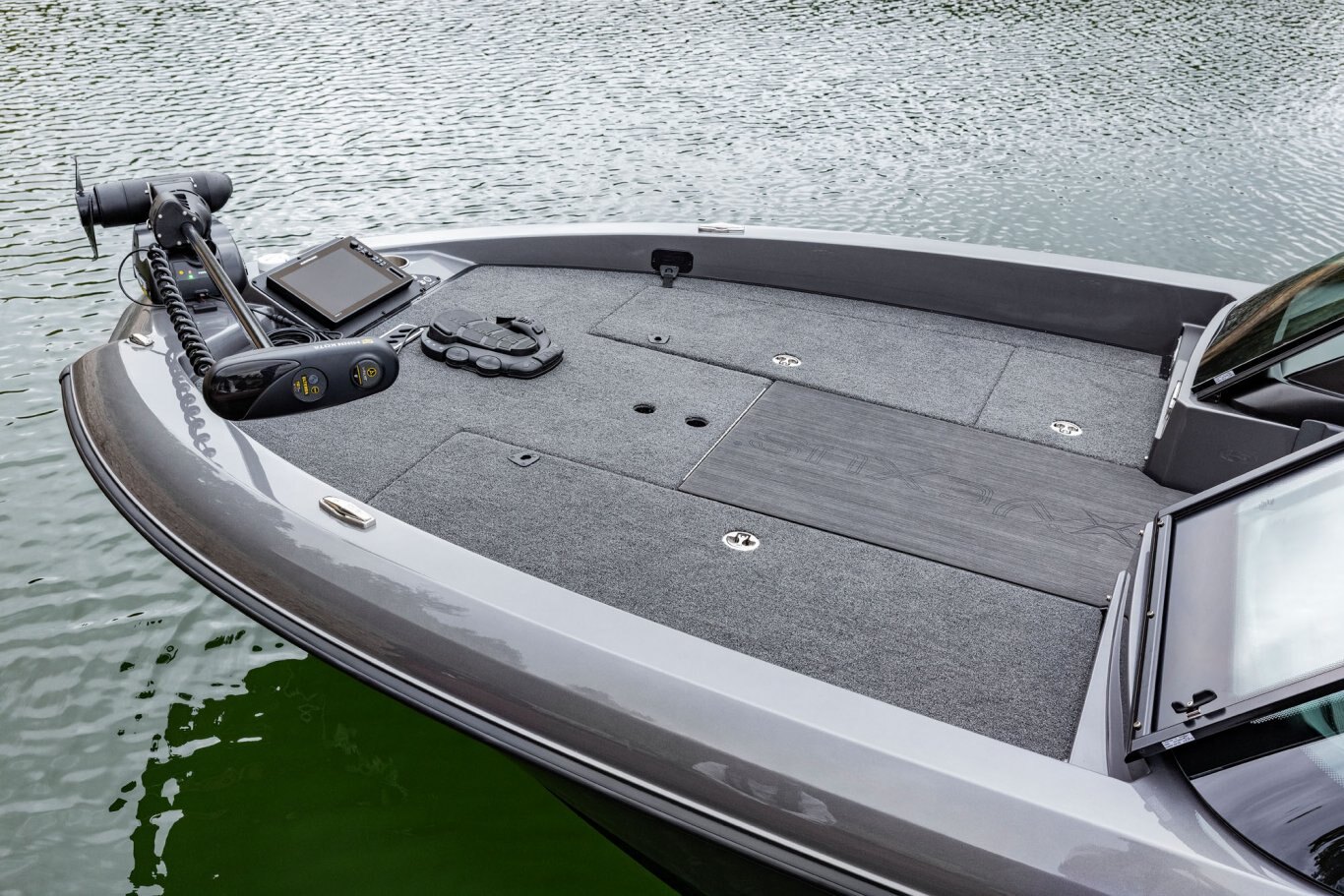 The forked front, flared bow, and convex hull not only work to deliver a noticeably dry ride but provide an even larger front deck. Bow to stern, you won’t believe the room in this rig. There’s a world of rod, gear, cooler, and storage space throughout the layout not to mention wide-open seating for six. The skid-resistant, cockpit floor provides a soft touch while looking great, drying fast, wearing well, and making clean-up a breeze. Combined with additional side storage in the gunnels, easy battery access, and extra floor compartments, this design is built to keep what you need close at hand.
