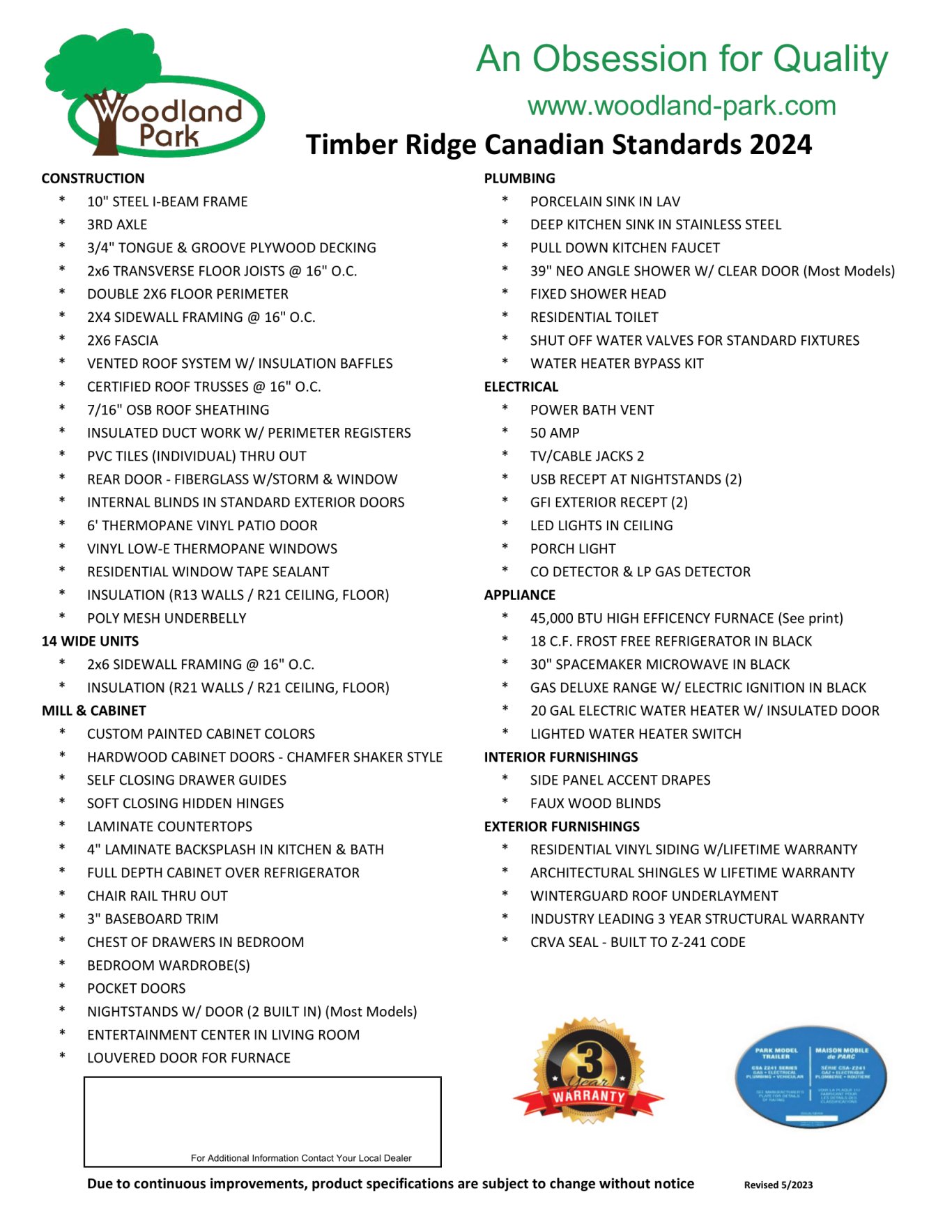 * Bi-Weekly payment includes set up on site at Country Gardens, Landings Campground or Whistle Bare Campground, Freight, and PDI. Plus Applicable Taxes